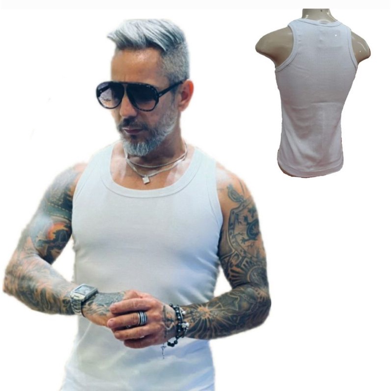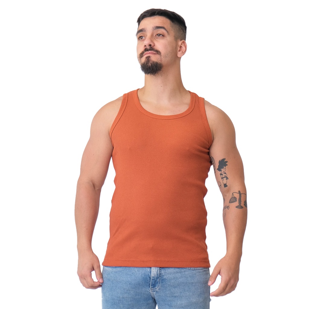 Regata Masculina Americana Canelada Algodão e Elastano