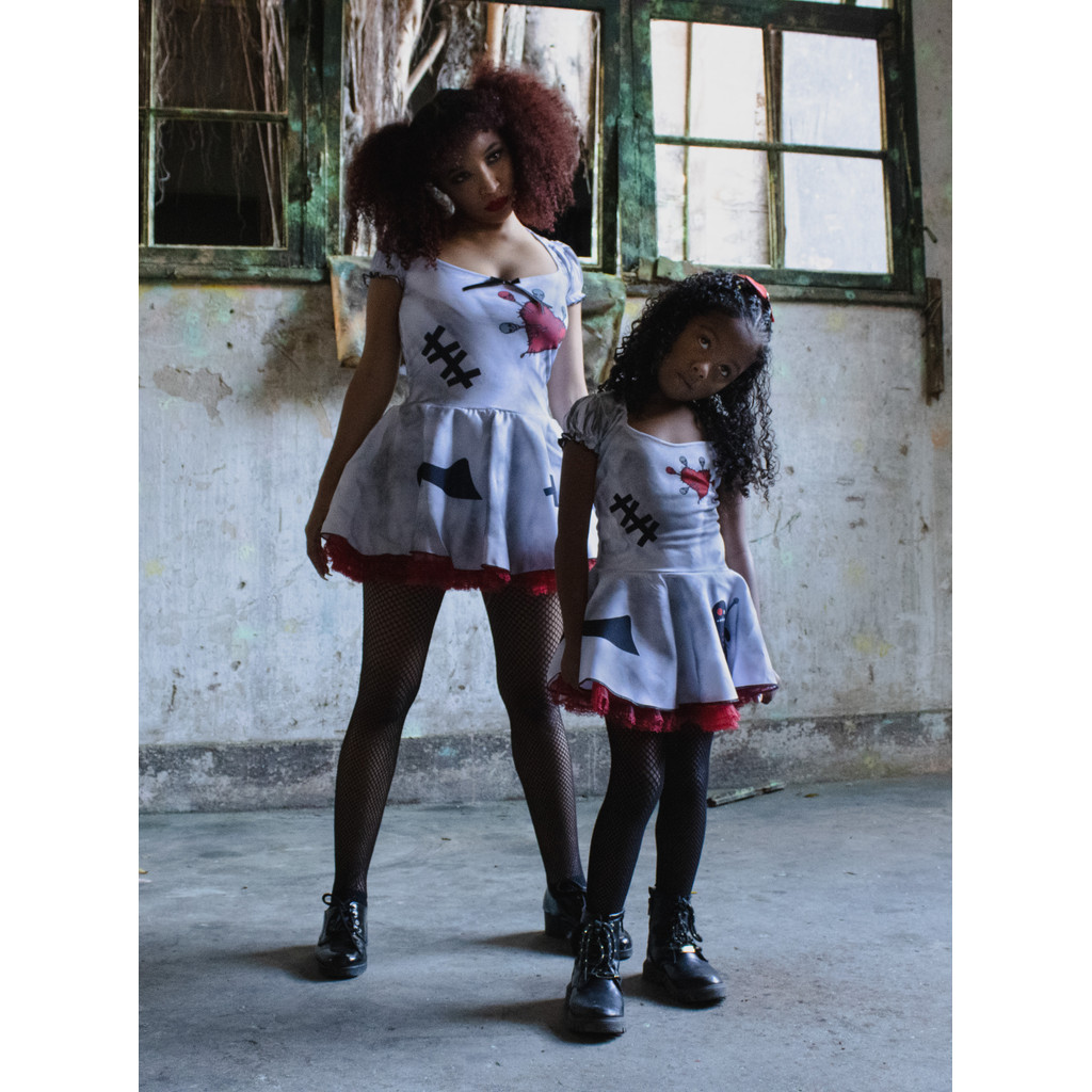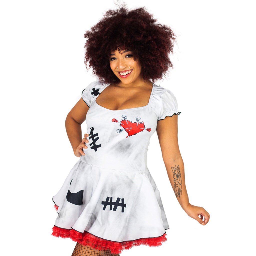Fantasia Boneca Voodoo Assassina Feminina Adulto para Festa Halloween Carnaval