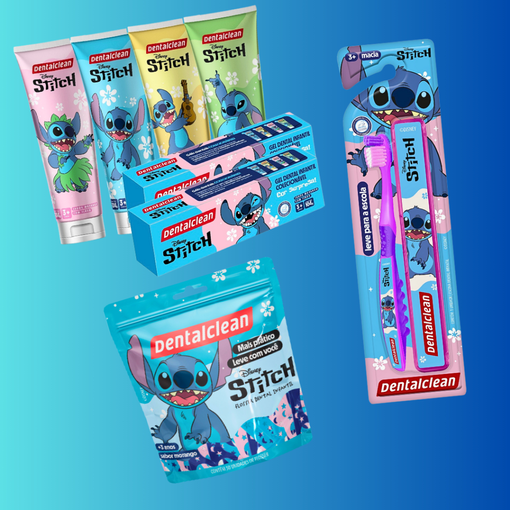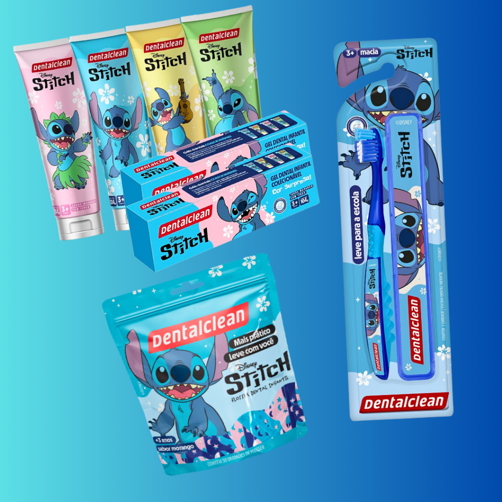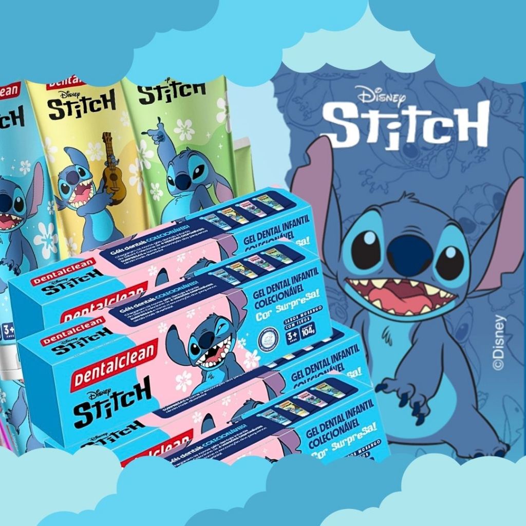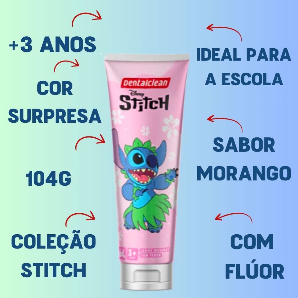 Kit Escolar Dental Gel Dentes Escova Macia Infantil Stitch Disney Cerdas Estojo Juvenil Flúor