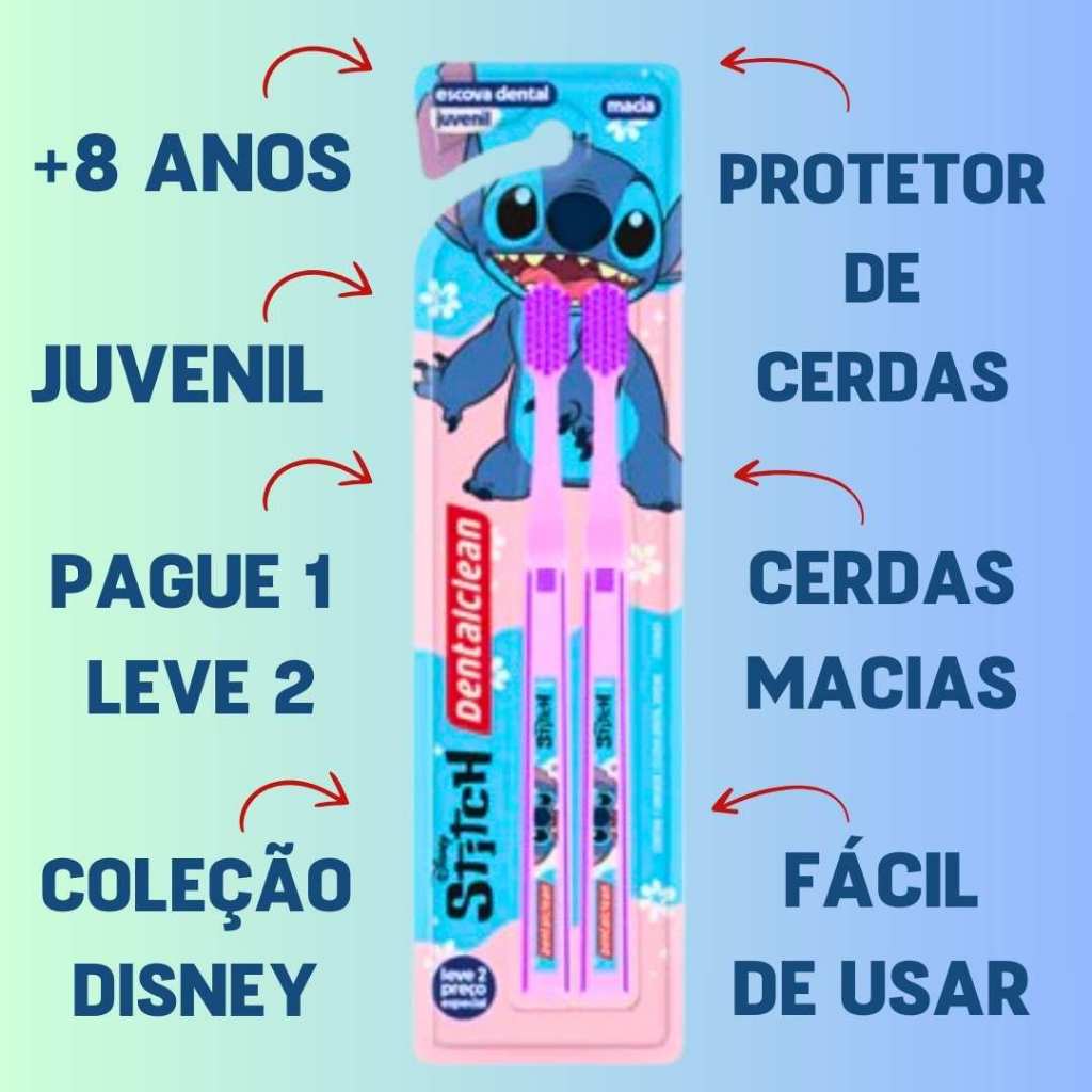 Escova Dental Macia Infantil E Juvenil Stitch E Lilo Coleção Kit 2 Disney Saúde Bucal Limpeza