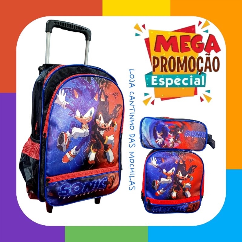 Kit Escolar Infantil Grande Com Rodinha Personagens Para Meninos