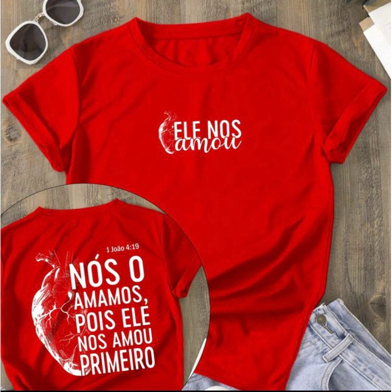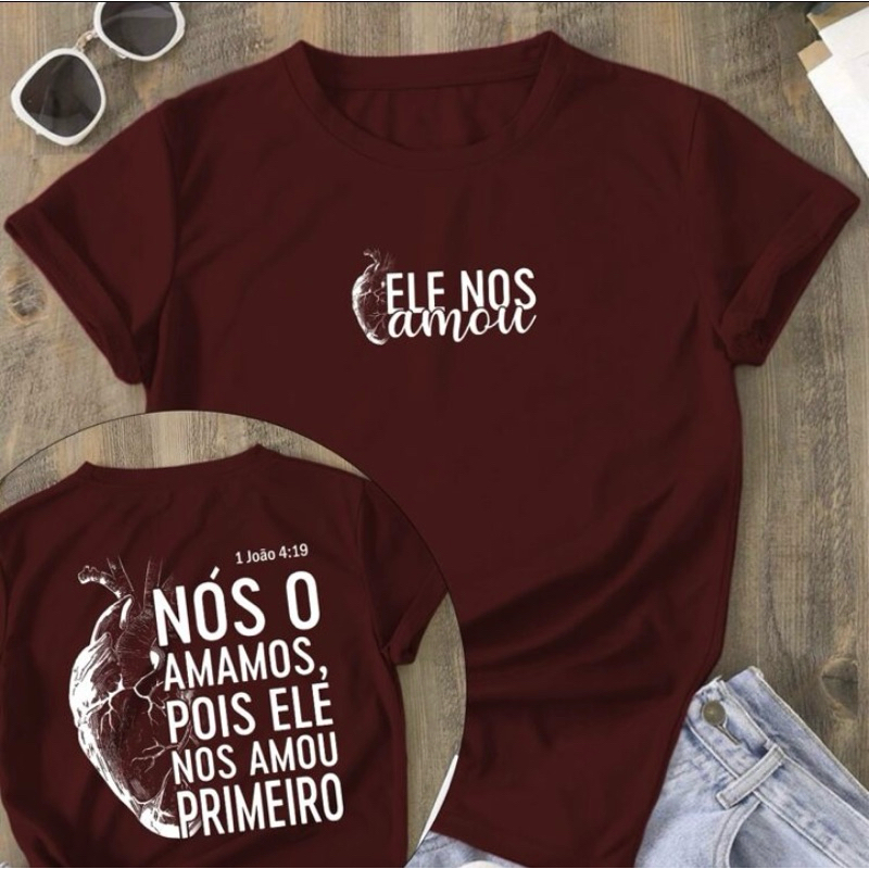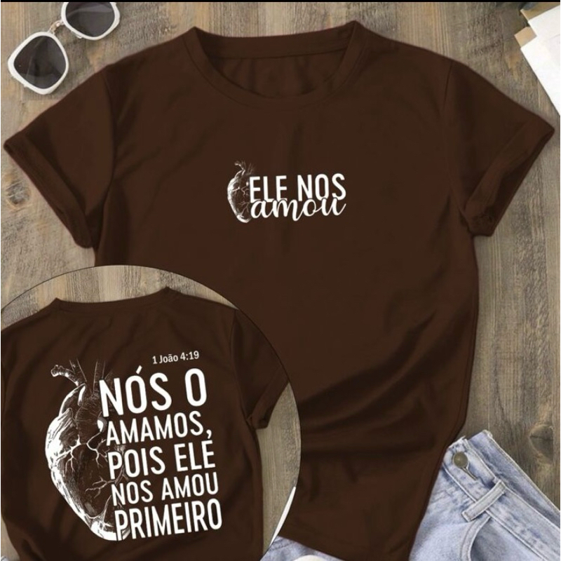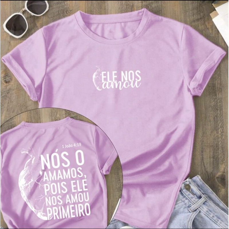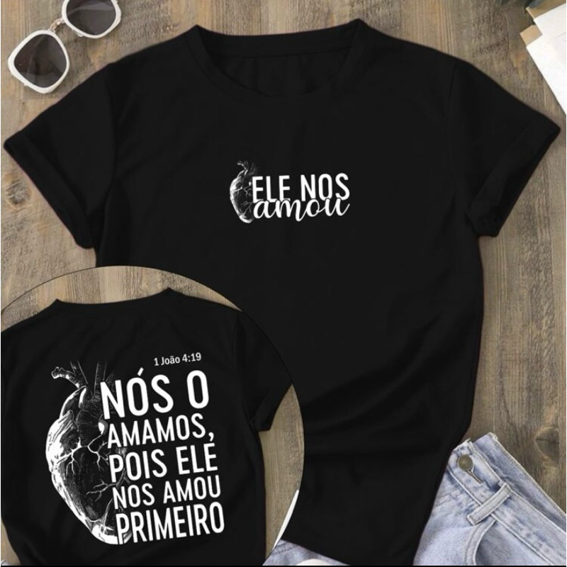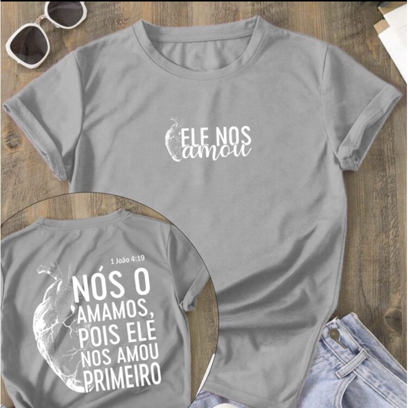Camiseta Feminina T-Shirt Cristã 100% Algodão ele nos amou primeiro