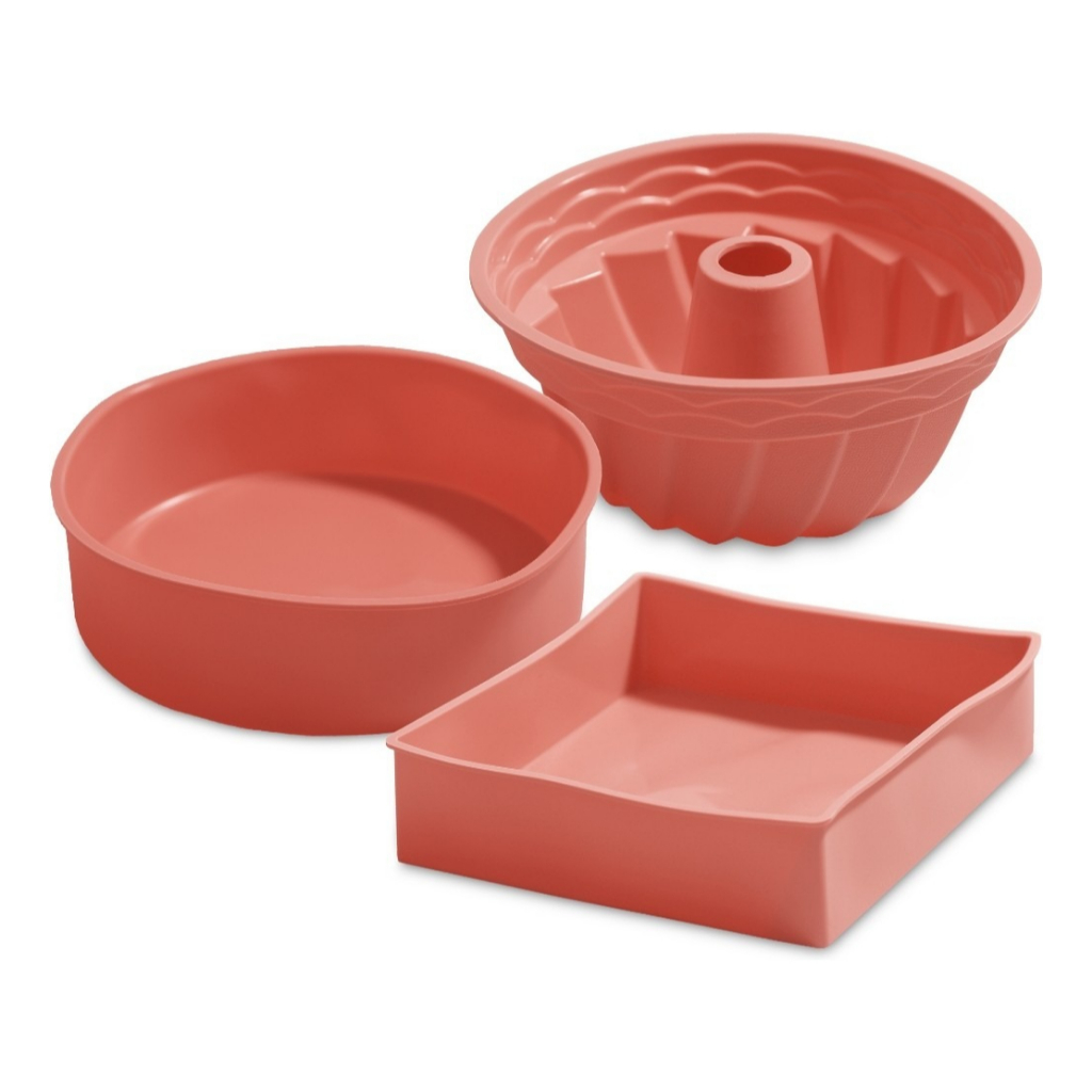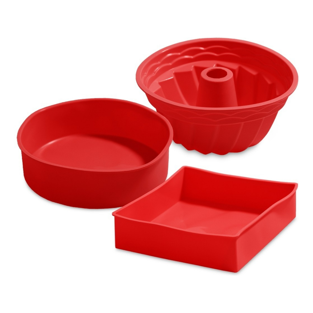 Kit 3 Formas Bolo Em Silicone Para Air Fryer Forno Jogo Assadeiras Antiaderente Utensílios Cozinha