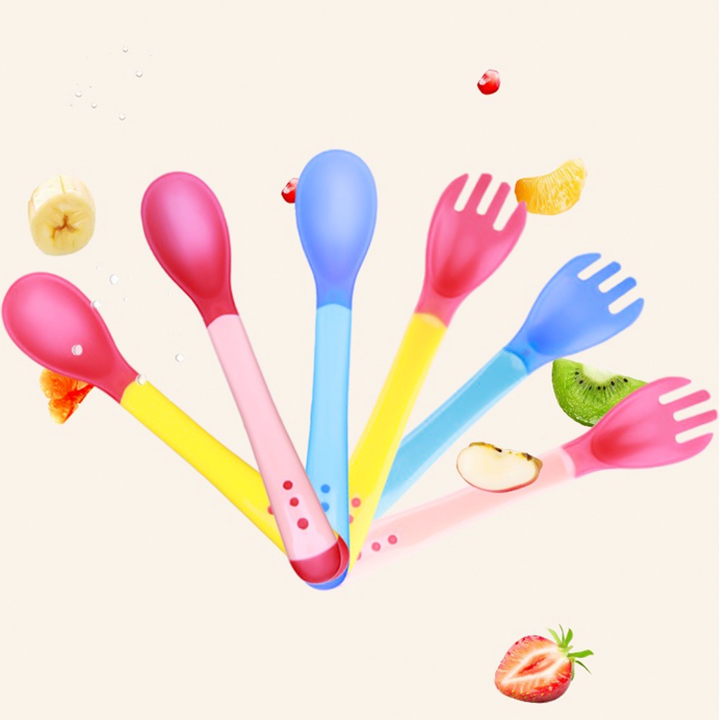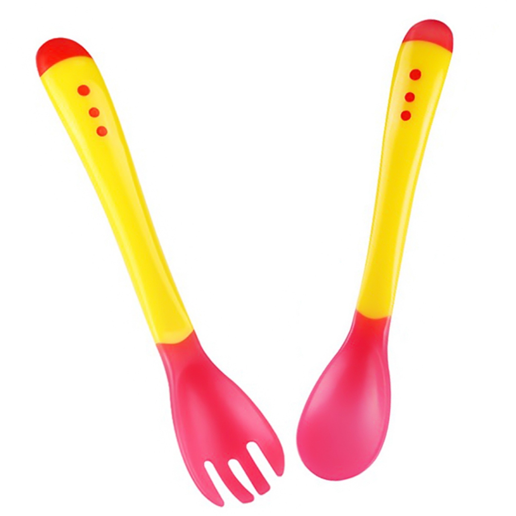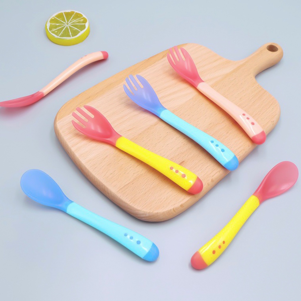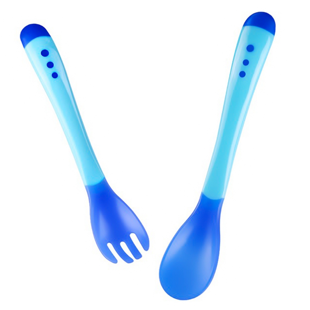 Talheres para Bebê Infantil com sensor temperatura Colher e Garfo em Silicone