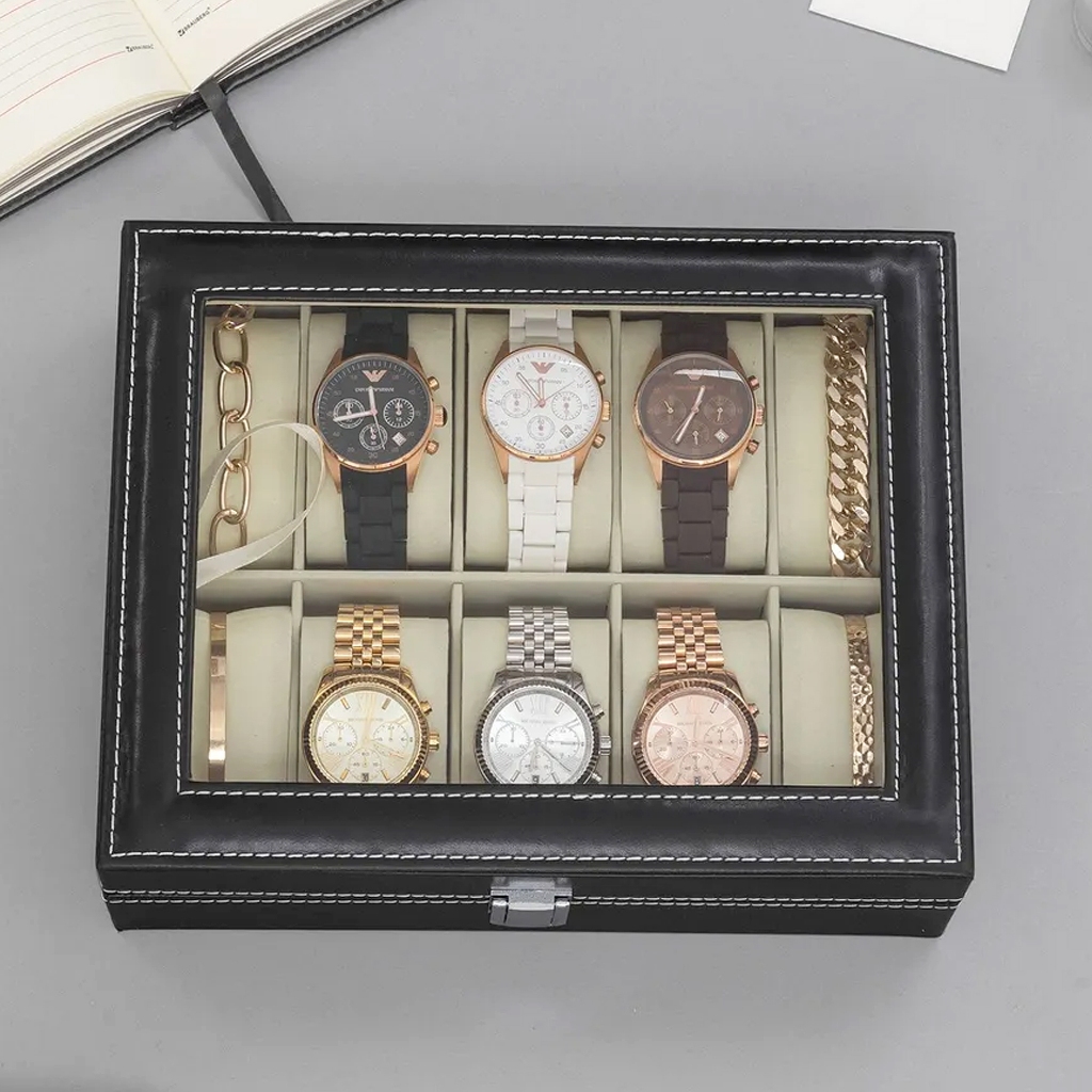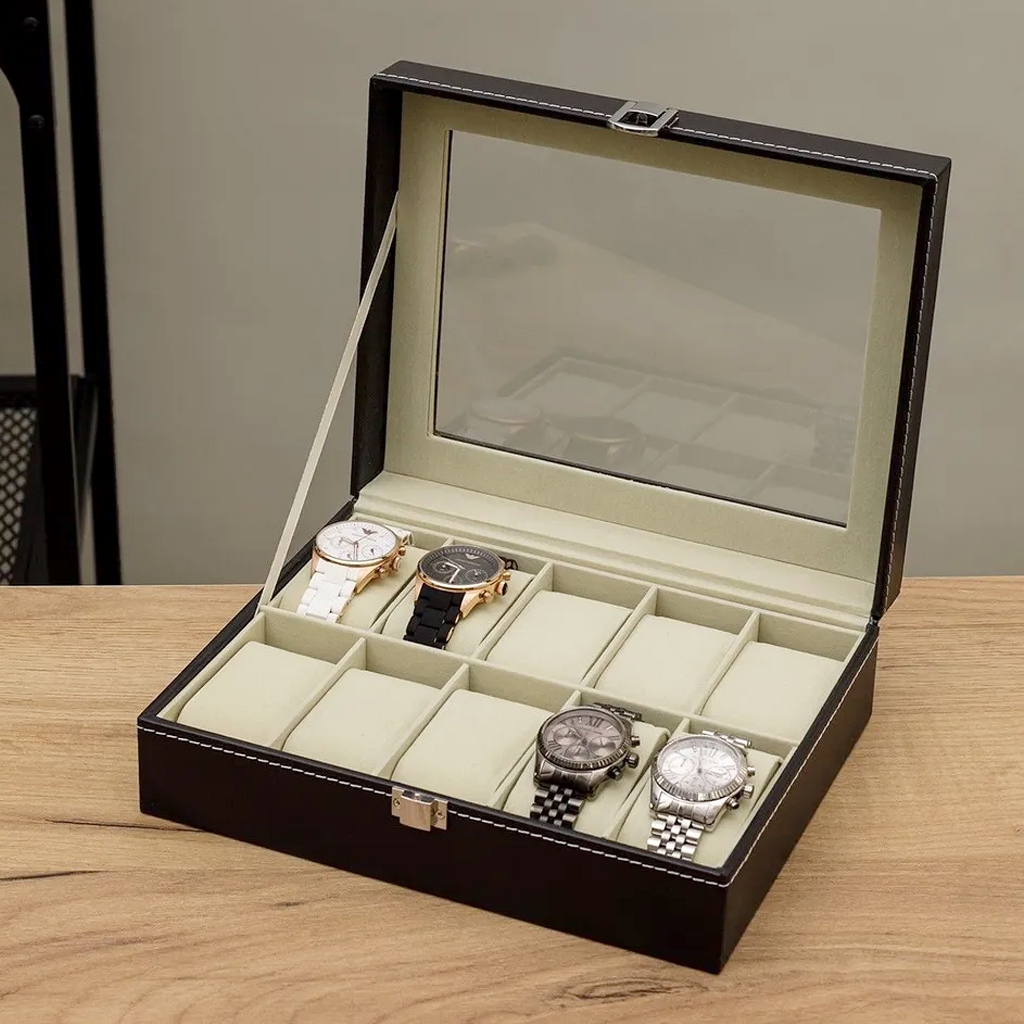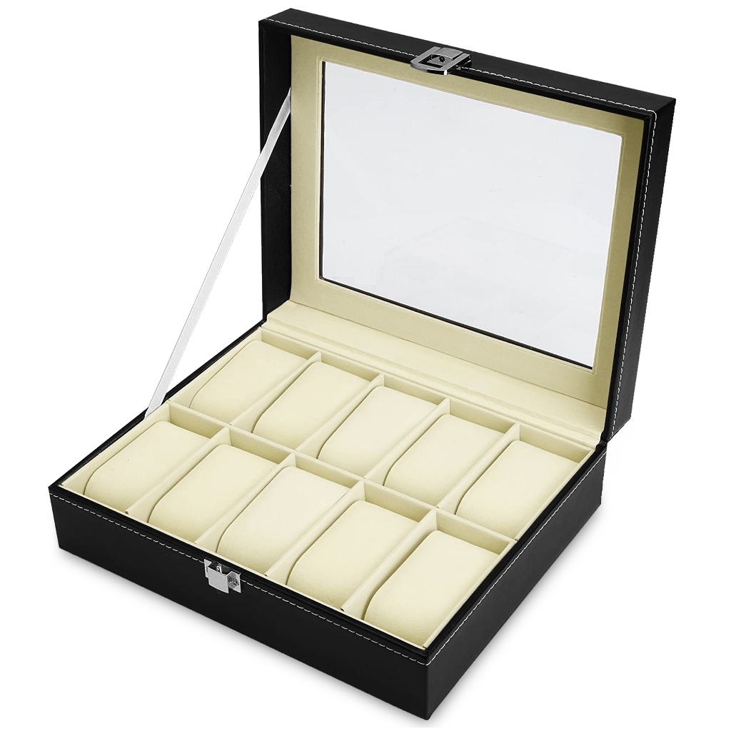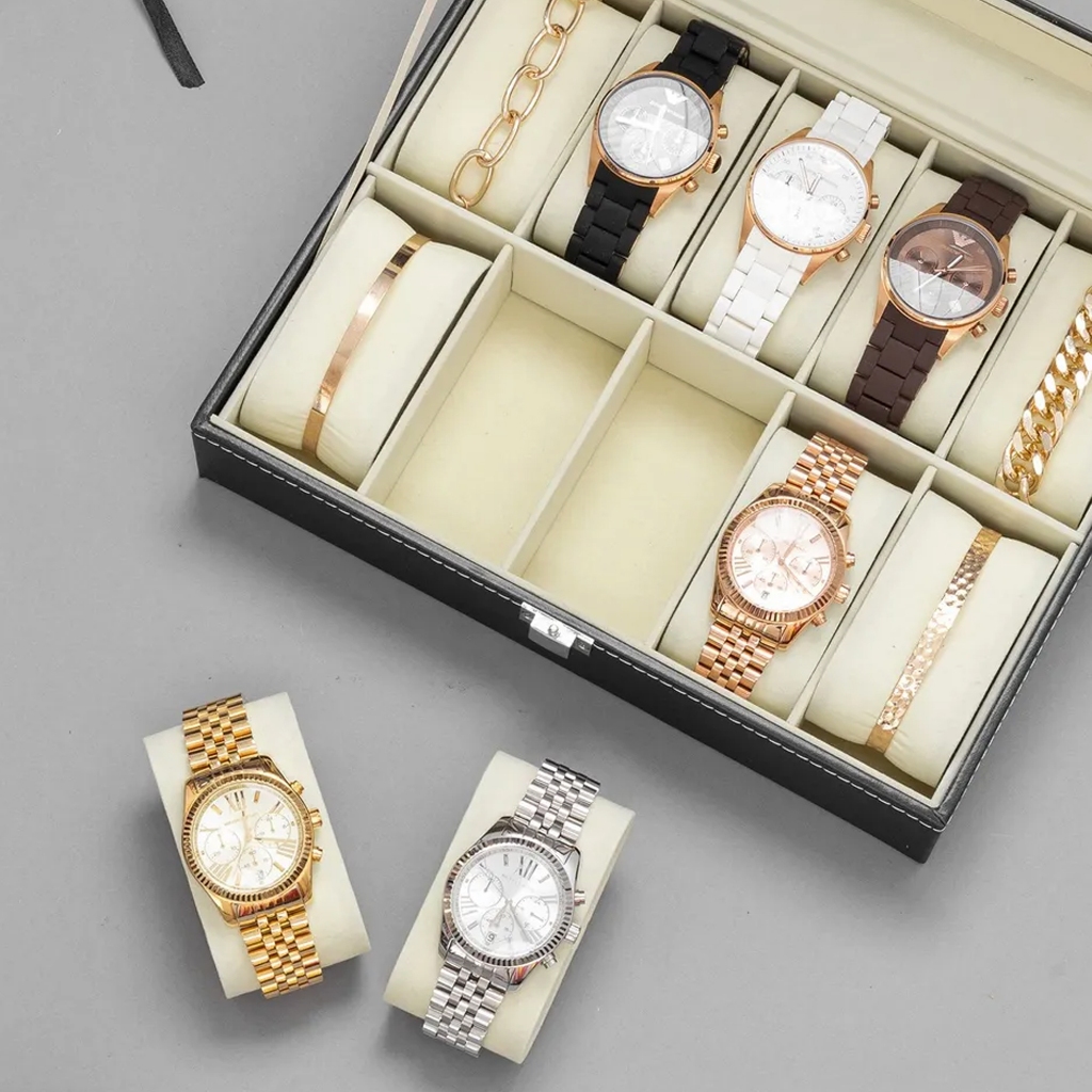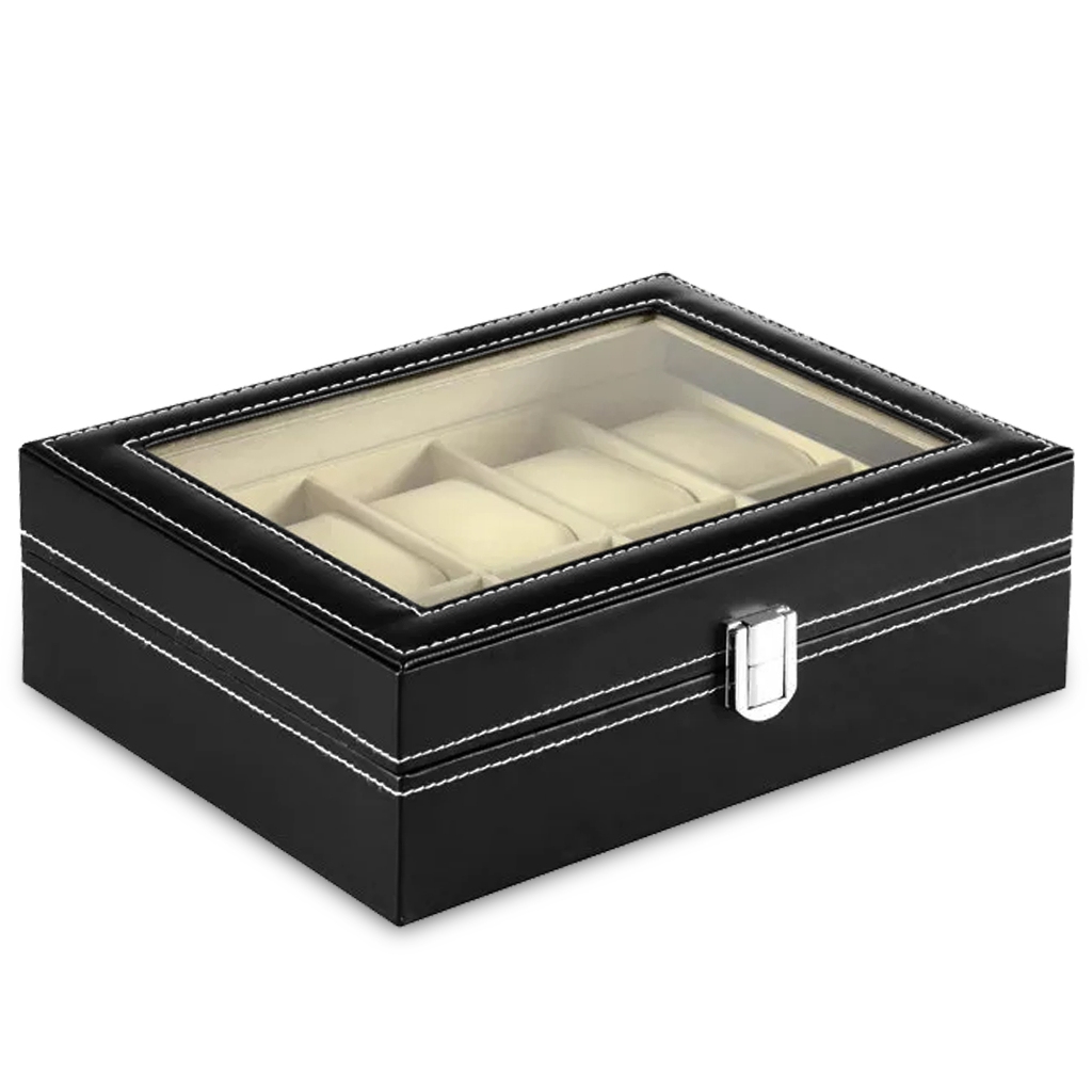Estojo Porta Relógio Maleta Nichos Couro Sintético Organizador de Joias Óculos e Bijuterias