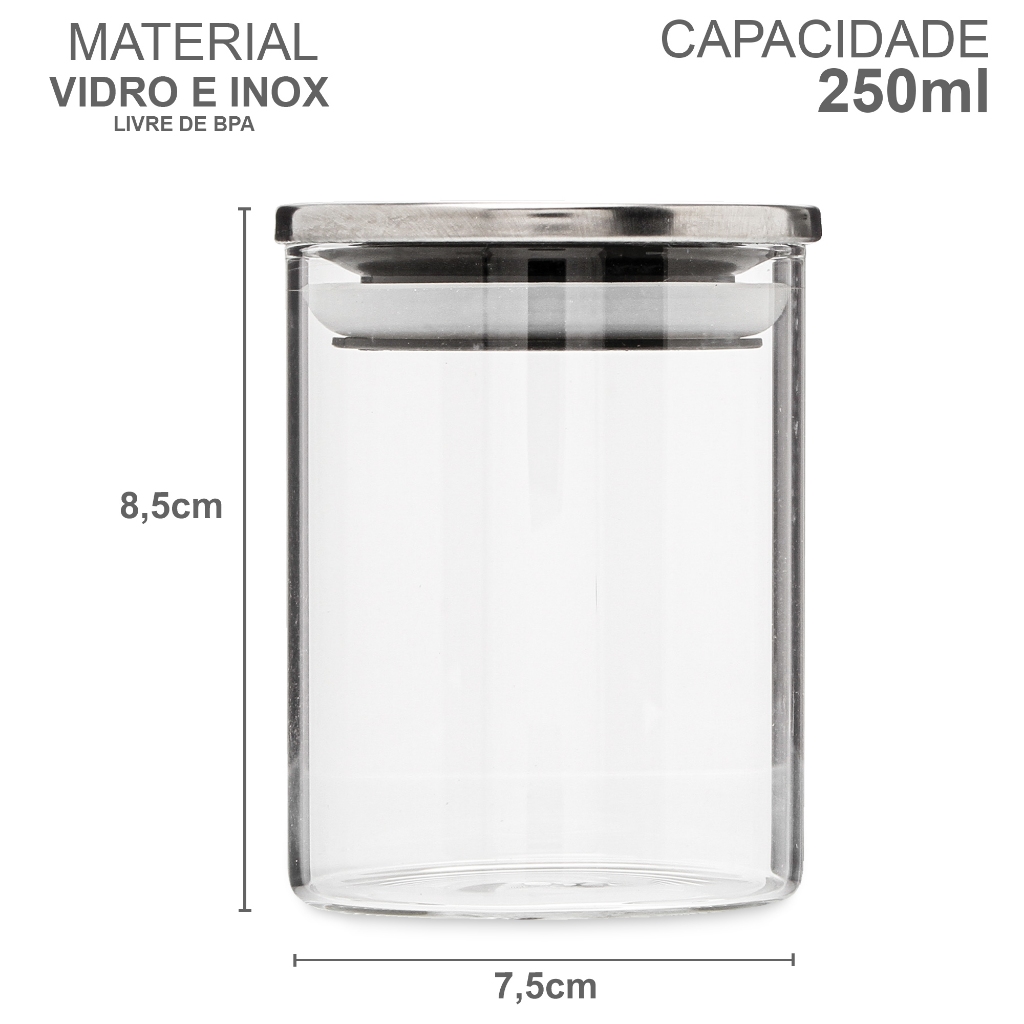Potes de Vidro Herméticos com Tampa inox Porta Tempero Condimento