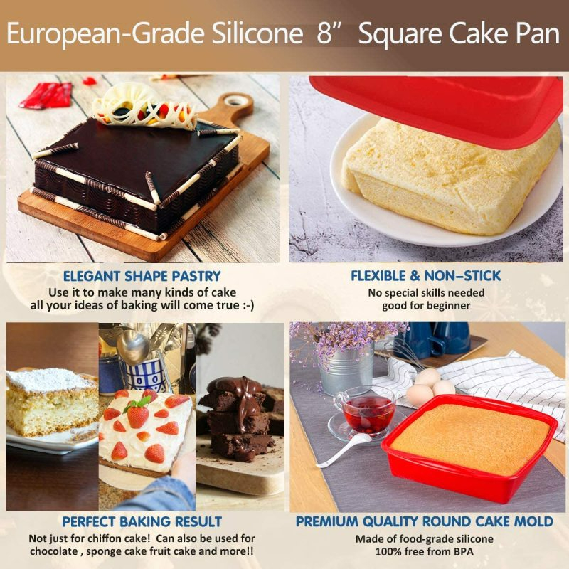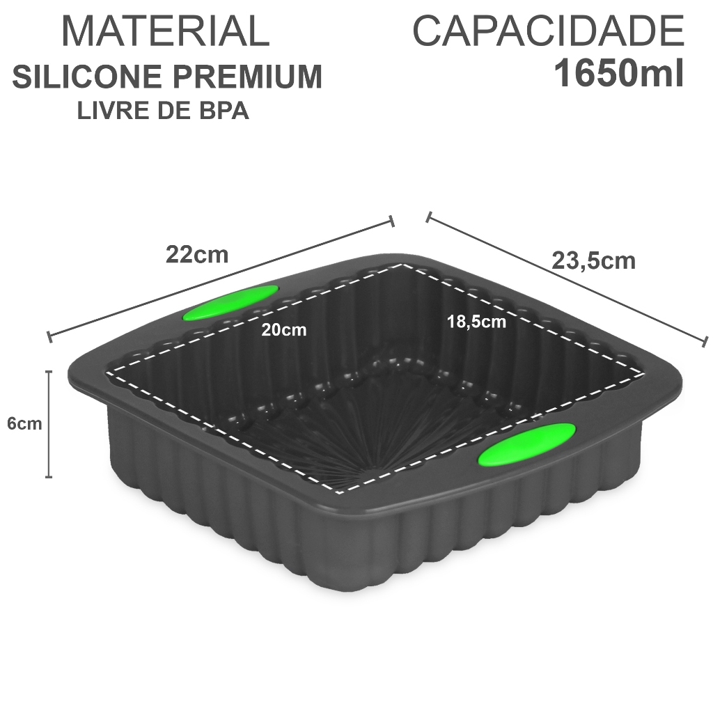 Assadeira De Silicone Forma Quadrada Antiaderente Bolo Pudim Torta Mousse Forno Freezer Livre BPA