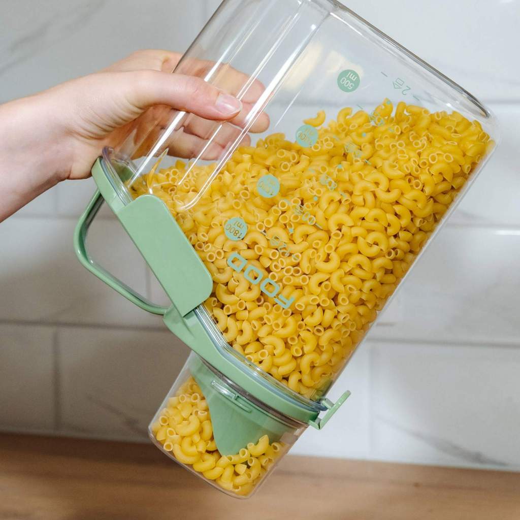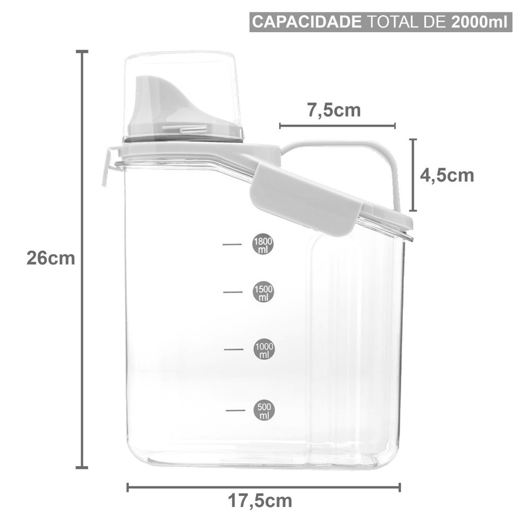 Kit 2 Pote Hermético Acrílico Dispenser Grãos Porta Sabão Pó Liquido Tampa Copo Medidor Dosador 2L