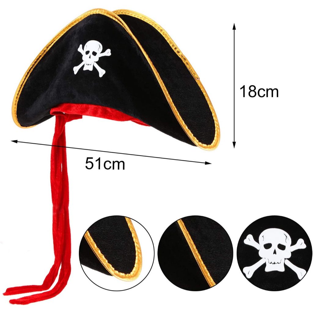Chapéu Pirata Criança Infantil Festa Fantasia Carnaval Halloween Aveludado Leve Confortável