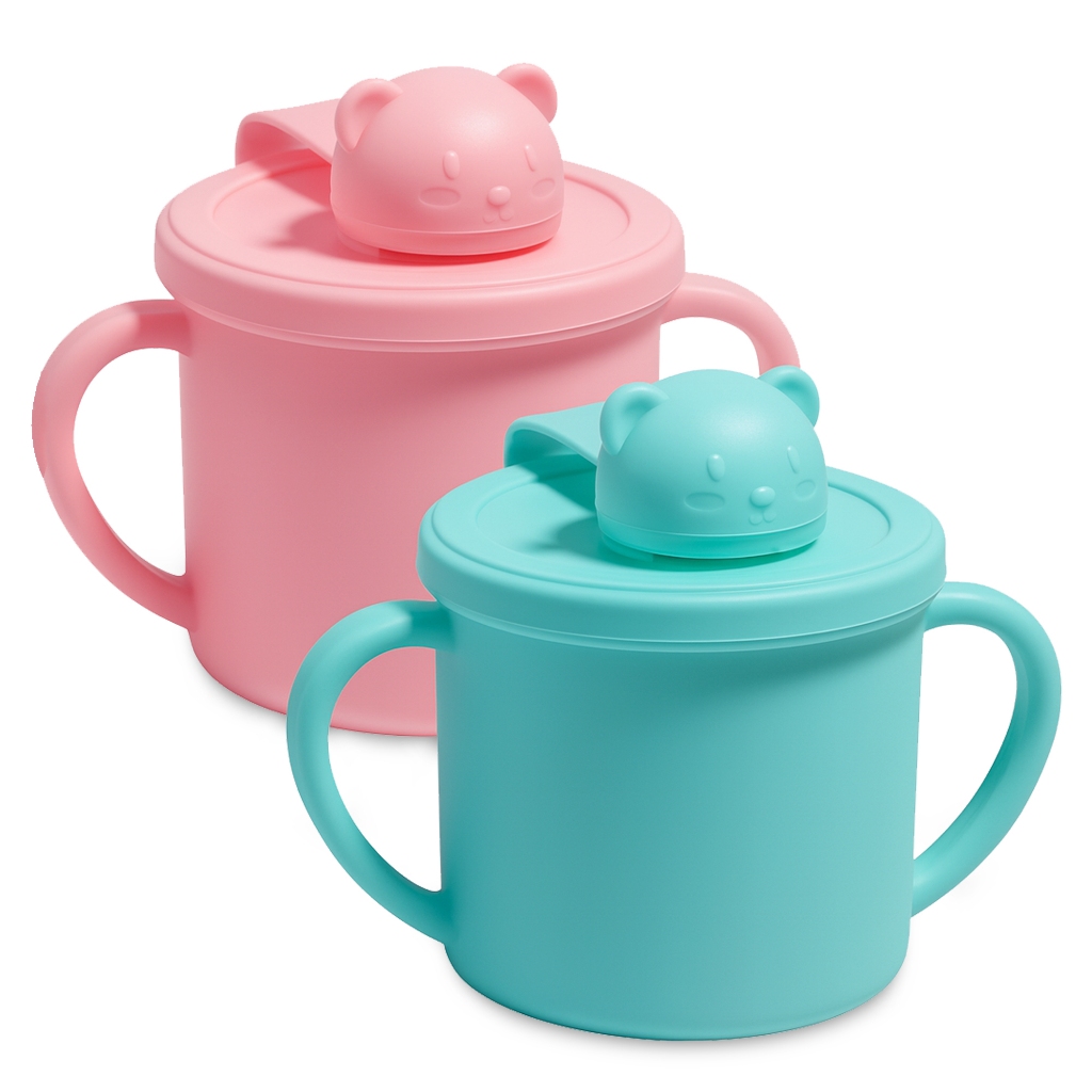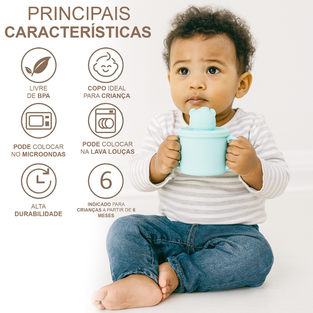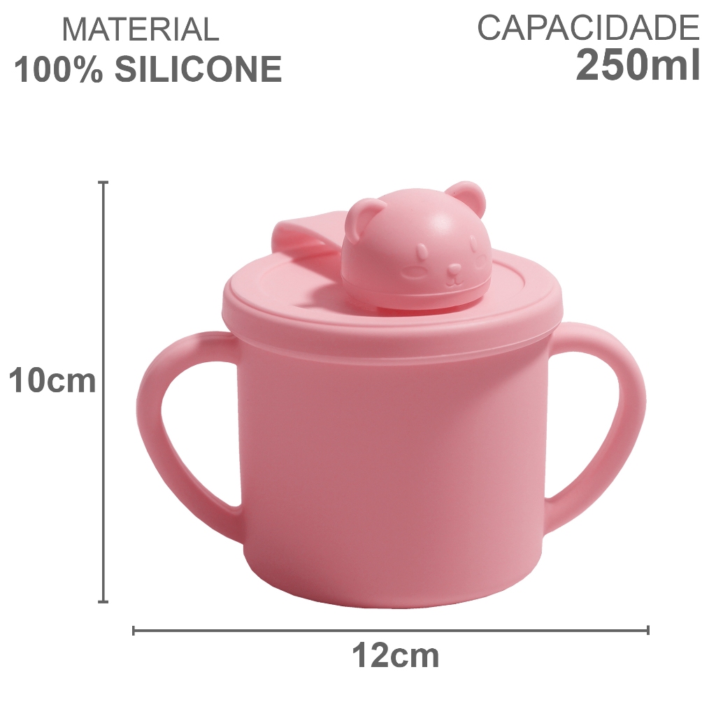 Copo Infantil De Silicone Transição Com Alça E Tampa Bebê Introdução Alimentar Refeição Livre de BPA