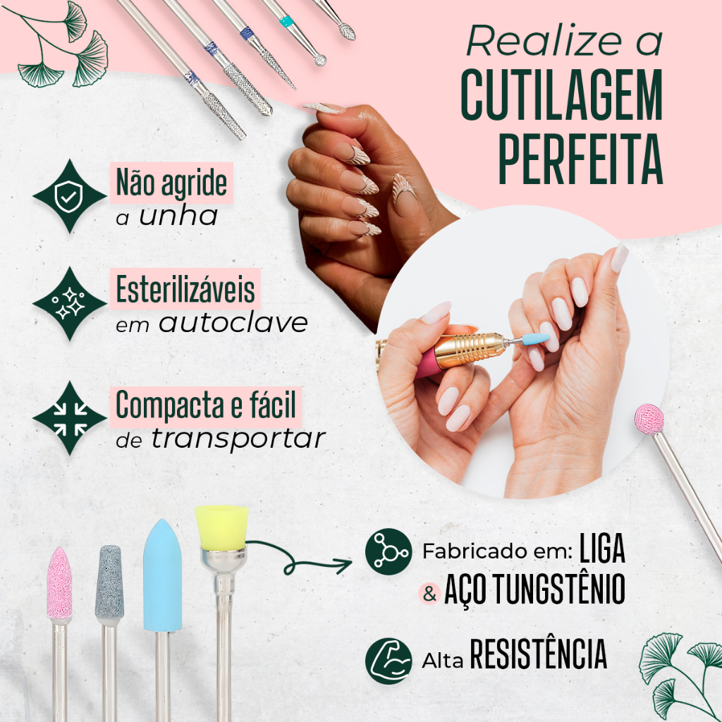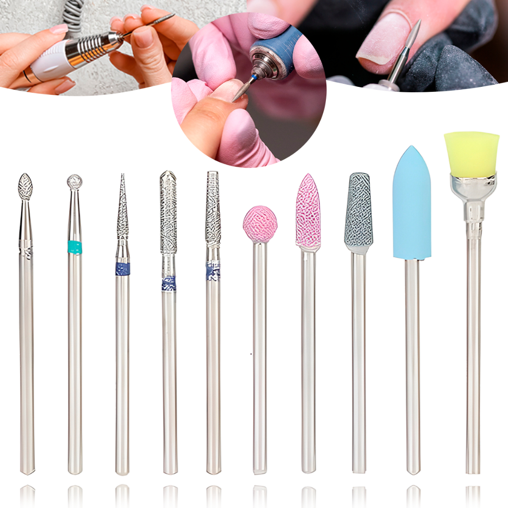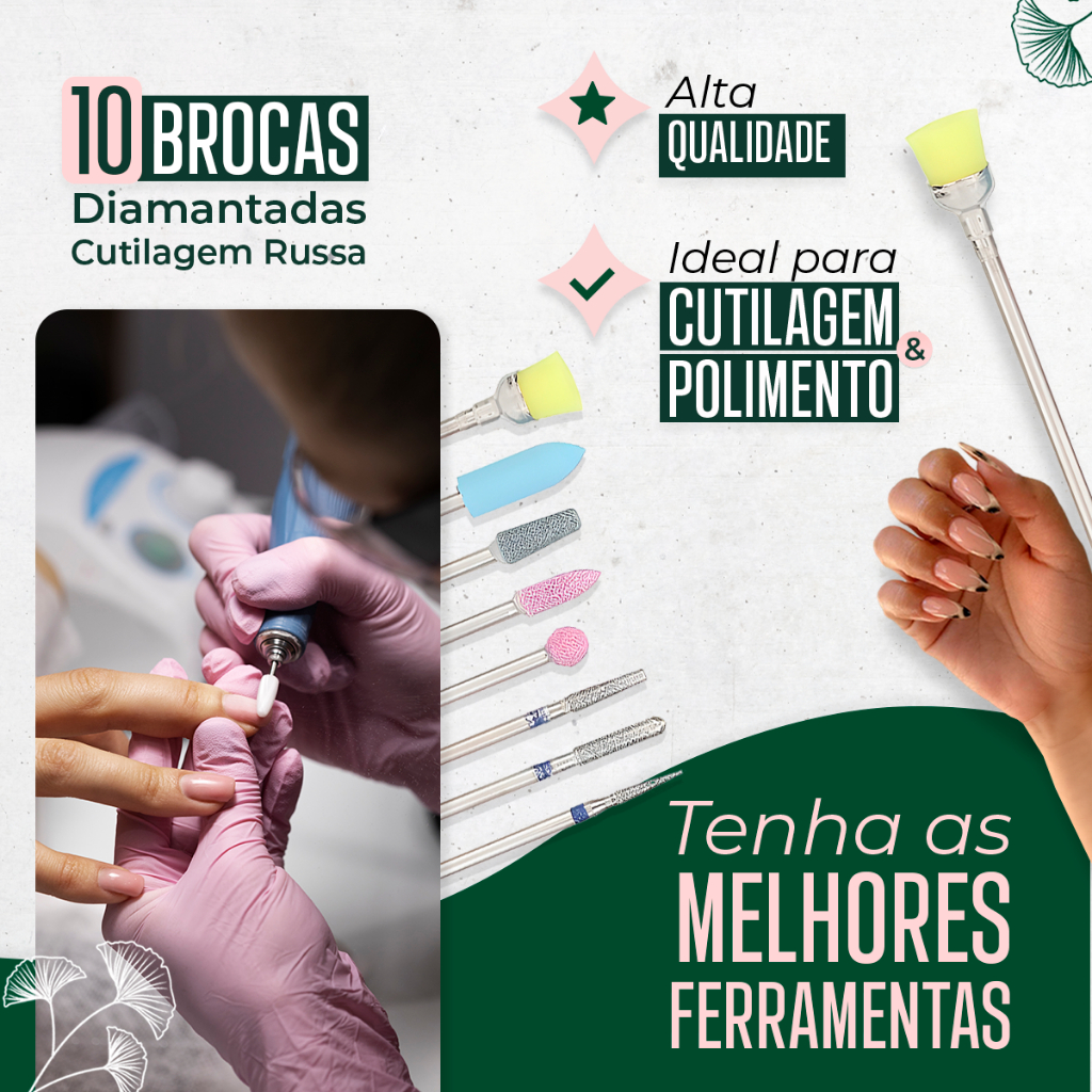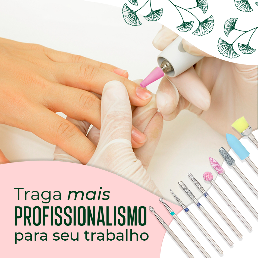 Kit 10 Brocas Diamatadas para Unhas Acrigel Gel Fibra Porcelana Decoração Limpeza Lixadeira Motor Elétrico OFERTA