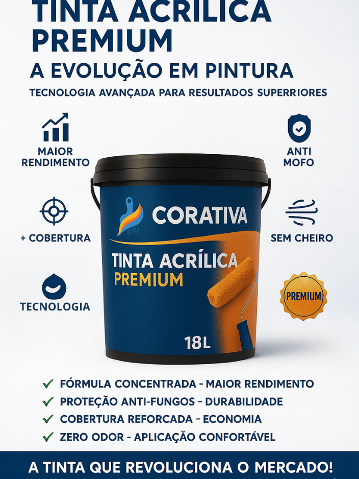 Tinta Acrílica Fosca 18L – Antimofo, Sem Odor e Ideal para Paredes em Ambientes Internos