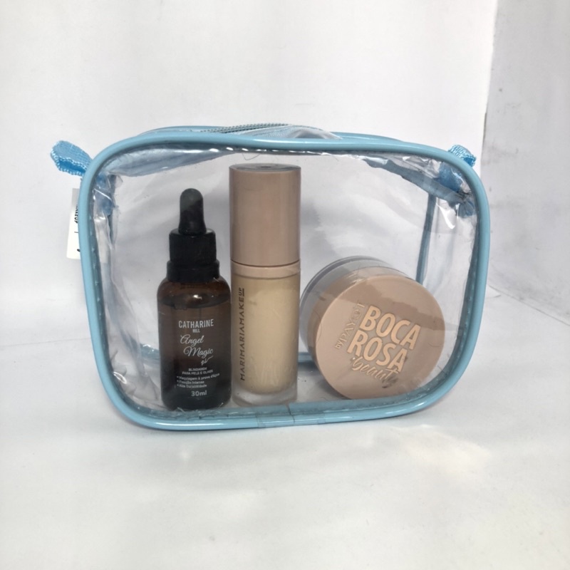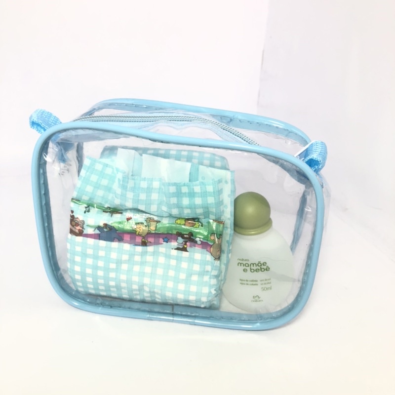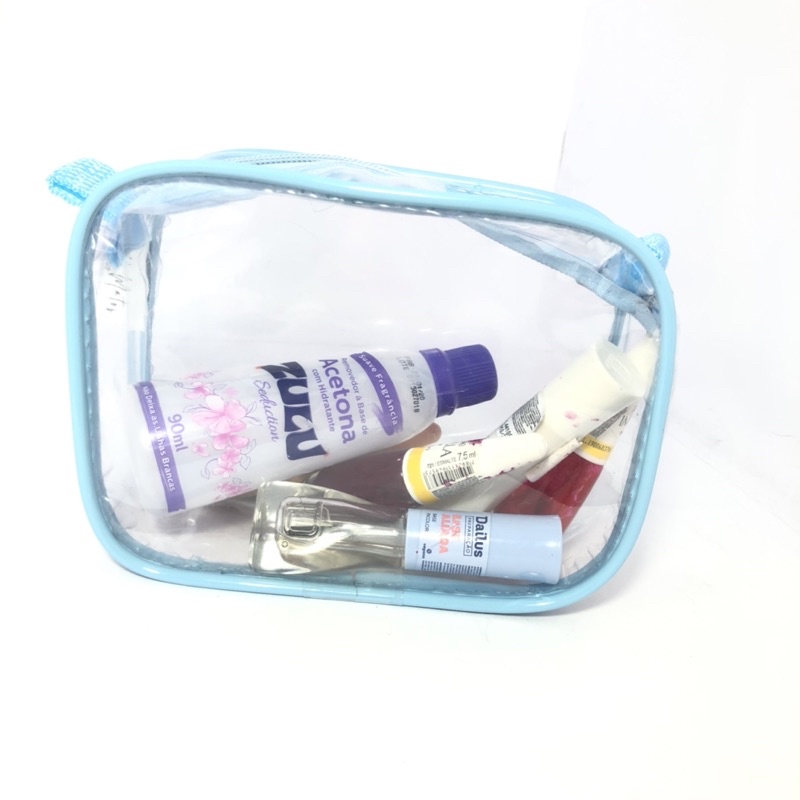 MINI necessaire transparente e AZUL 15x12 para maquiagem - maternidade - esmalte - para viagem - multiuso