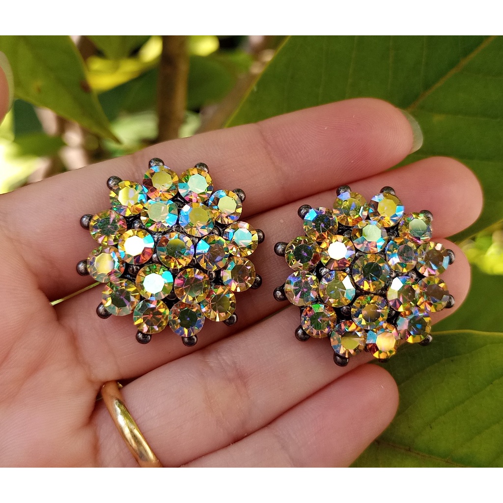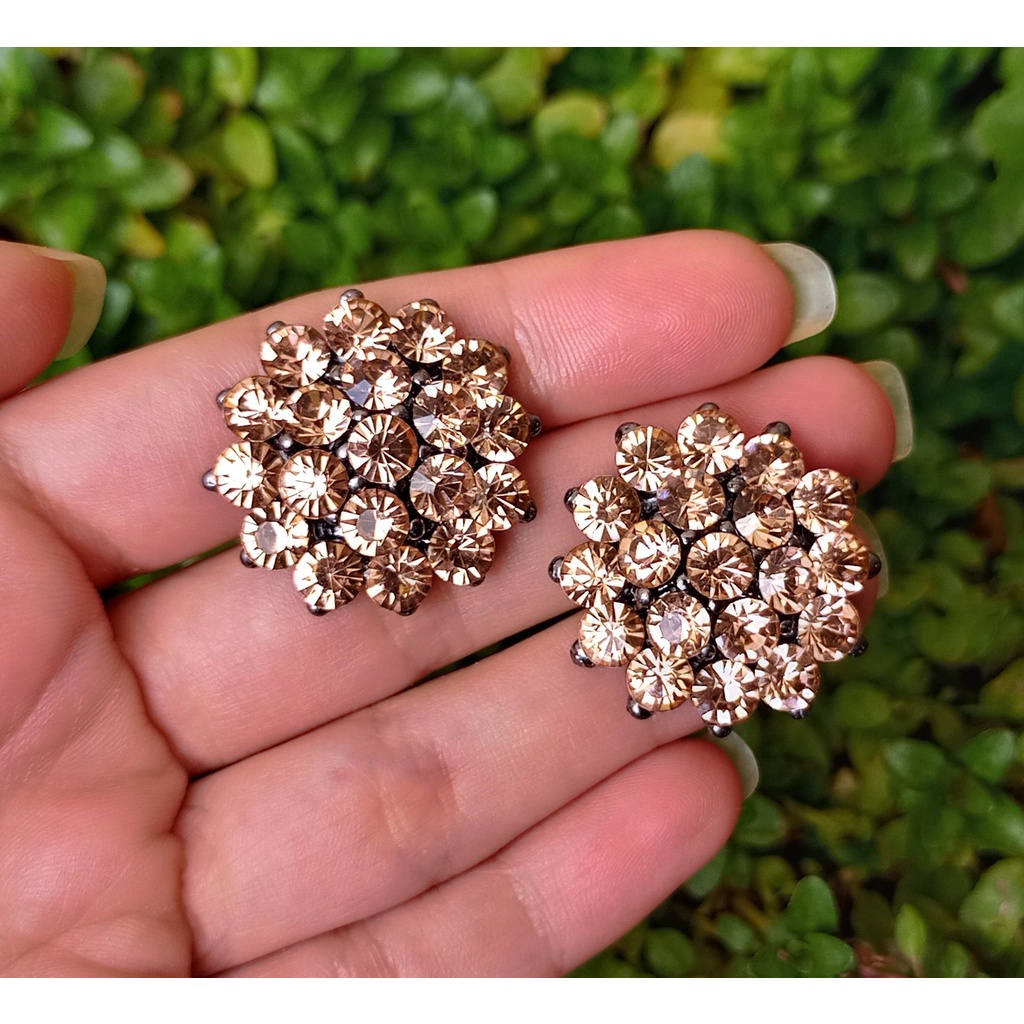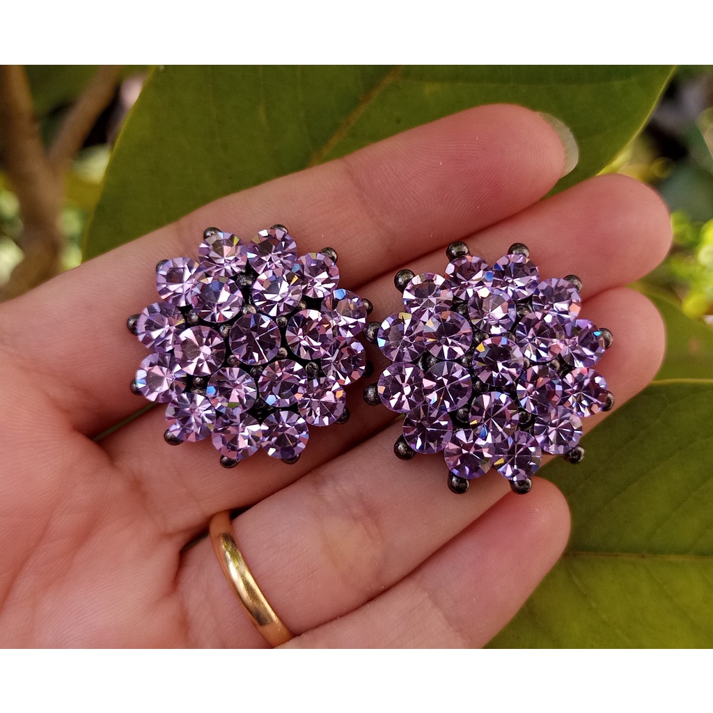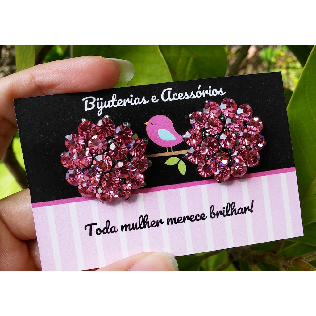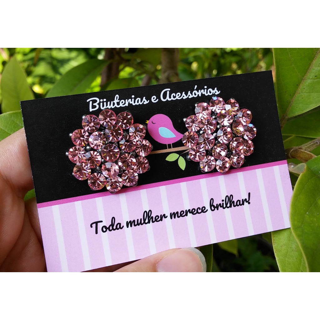 Brincos Femininos Moda Tendência Strass Brilho Banho Grafite - Novas cores!