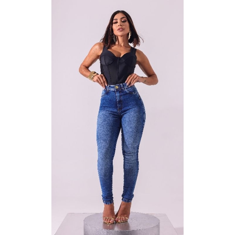 calça jeans feminina marmorizada com Lycra empina bumbum