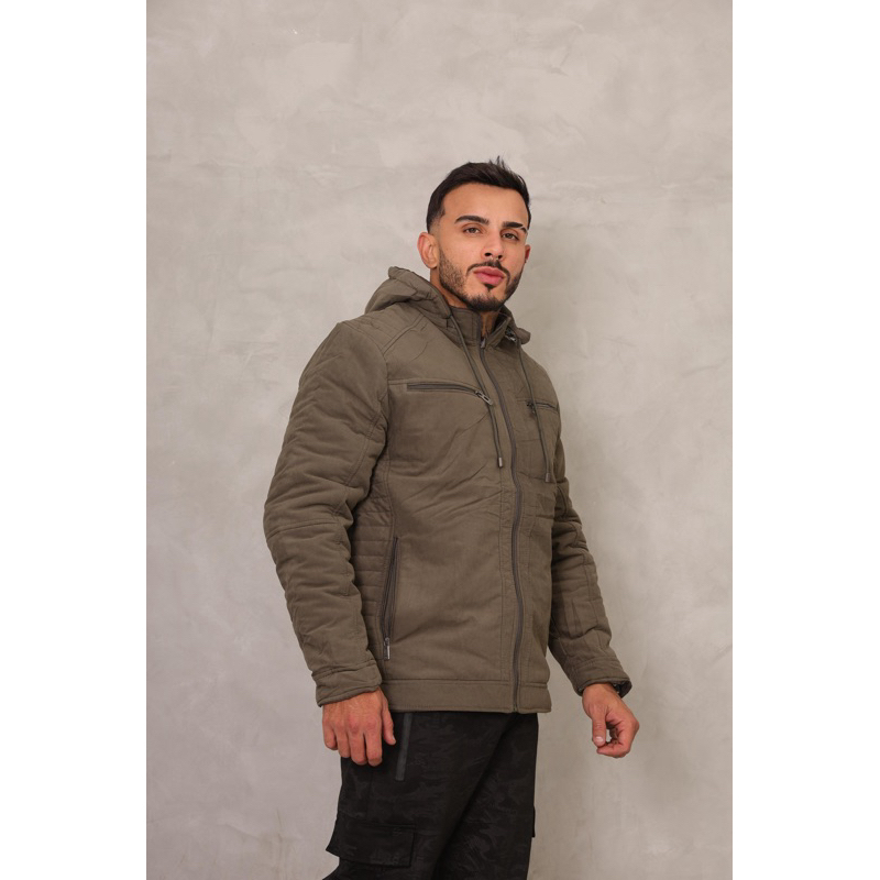 jaqueta masculina de sarja toda forrada por dentro com capus removível