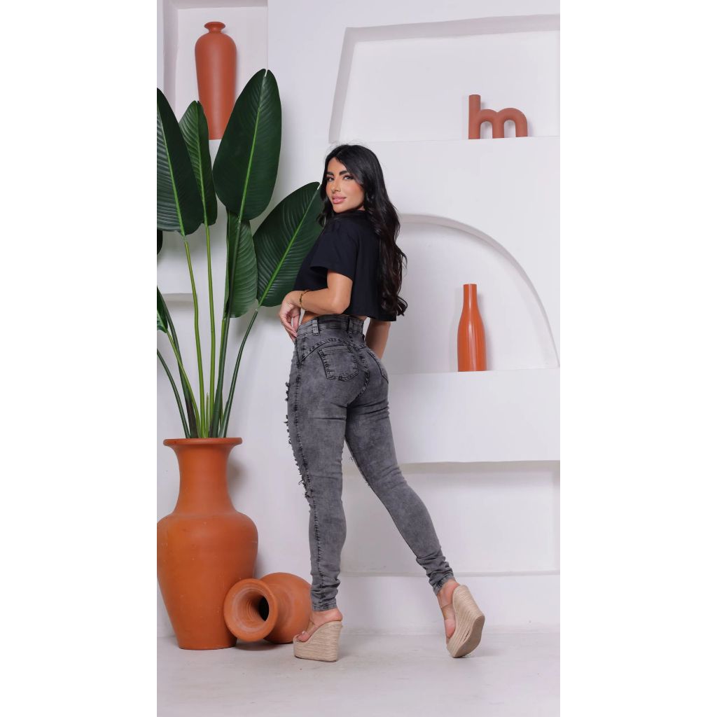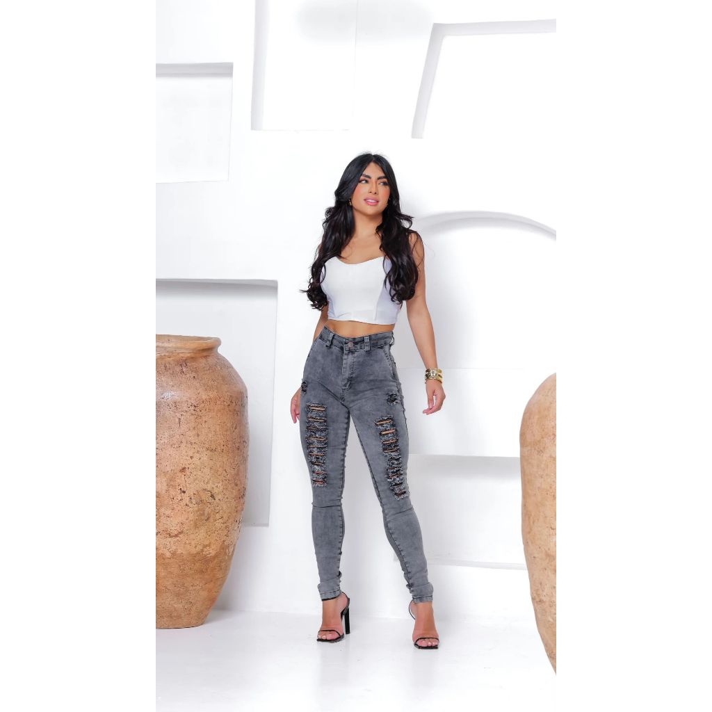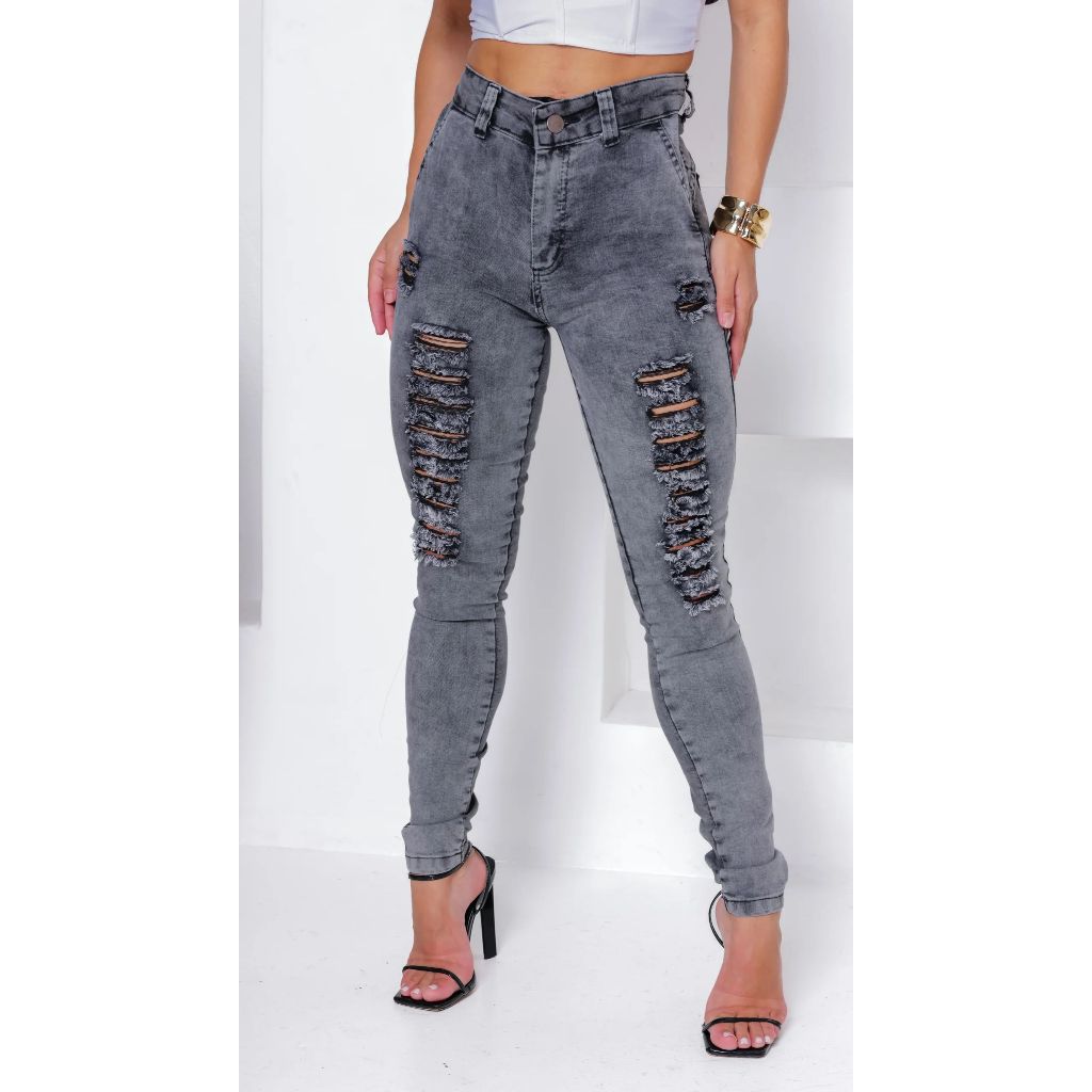 calça jeans feminina preta grafite rasgada super tendência de alta qualidade