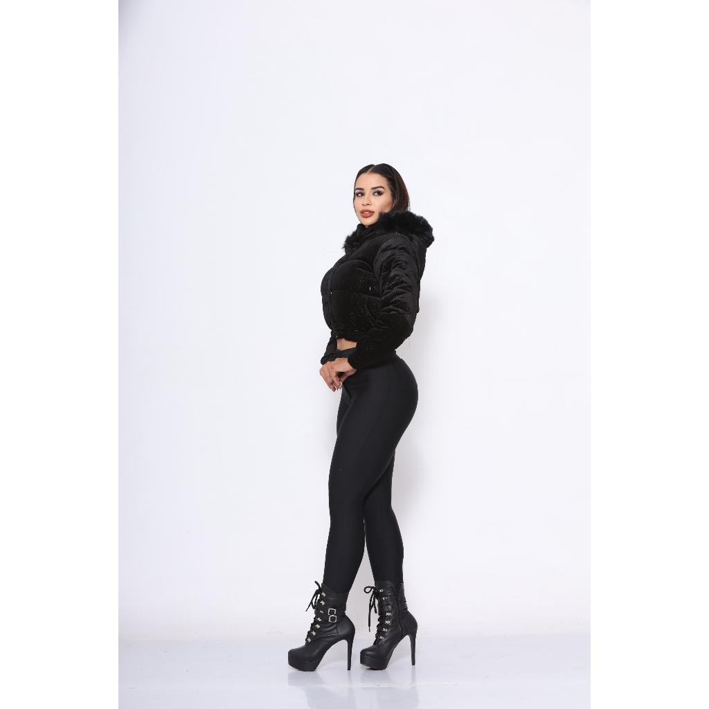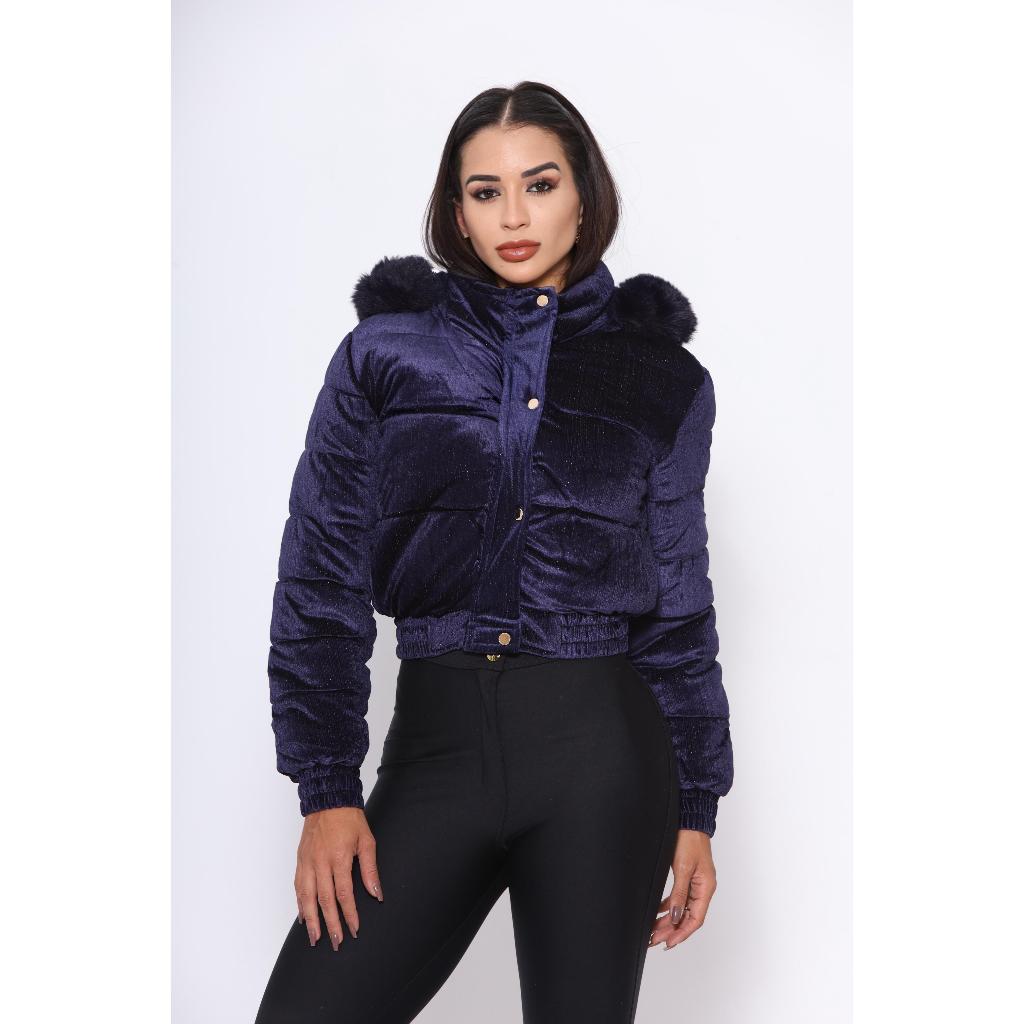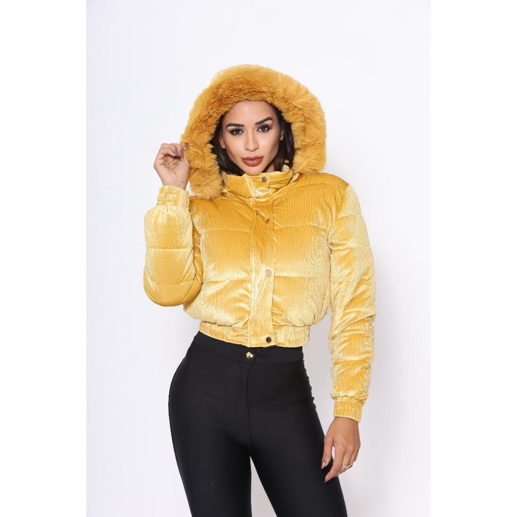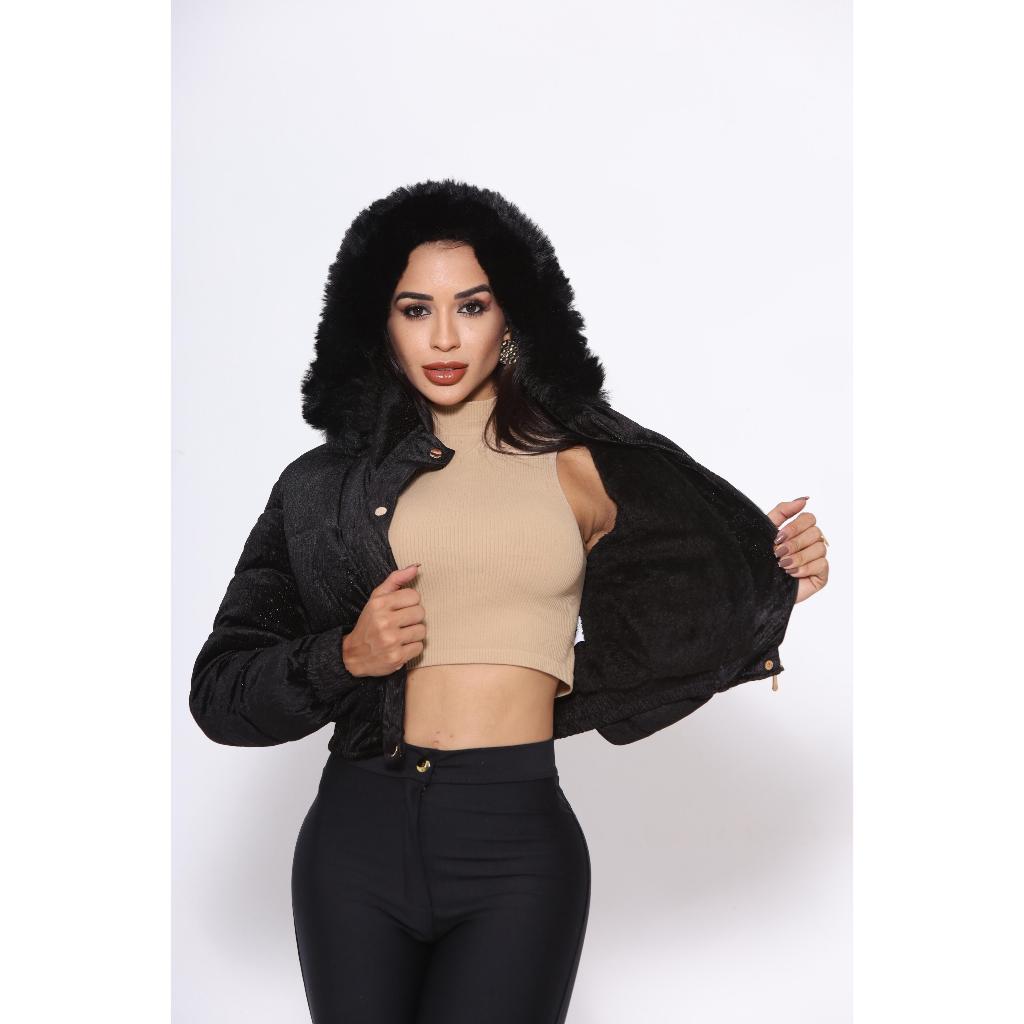 jaqueta puffer feminina tecido Suede toda peluciada por dentro com capuz removível vários cores alta qualidade