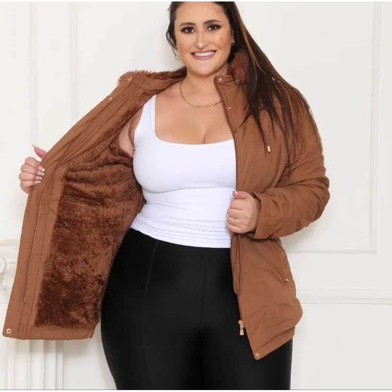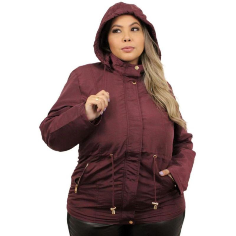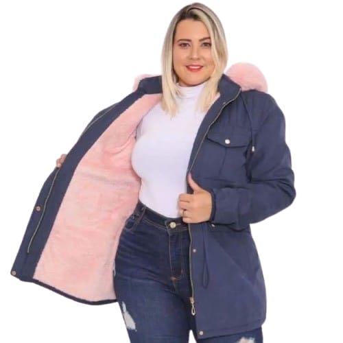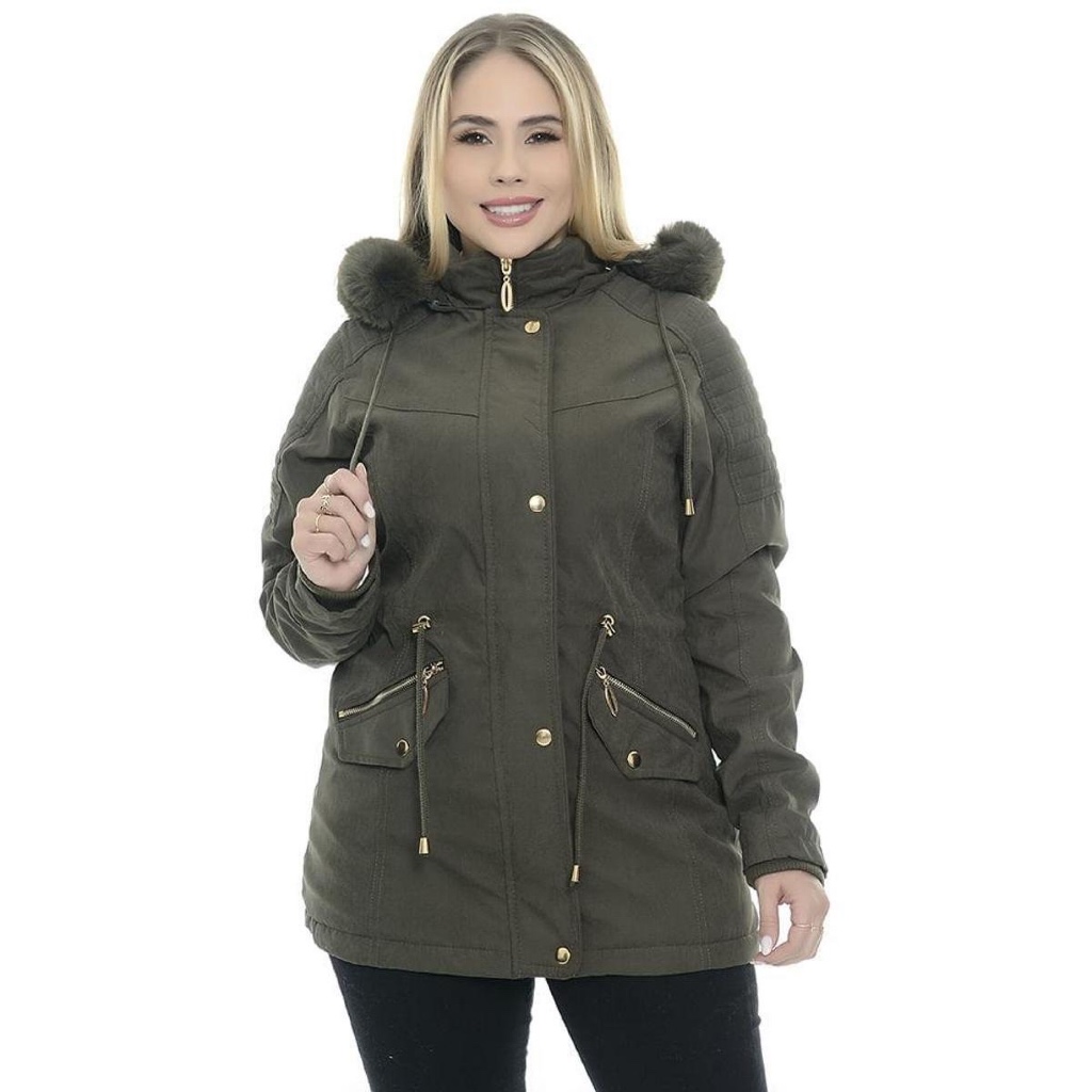 parka feminina plus size toda forrada por dentro em tecido sarja vários cores com capuz removível