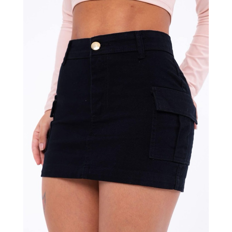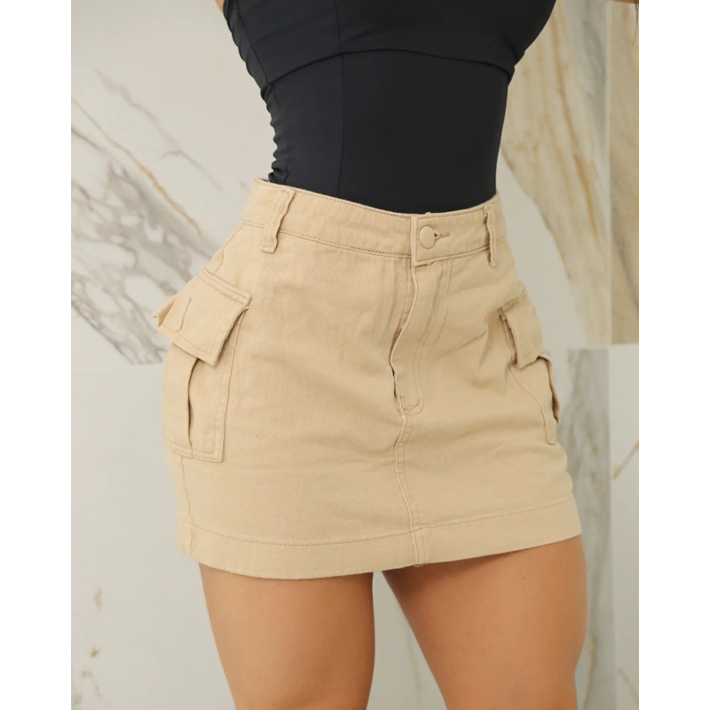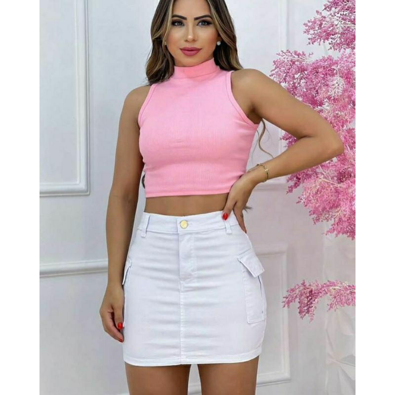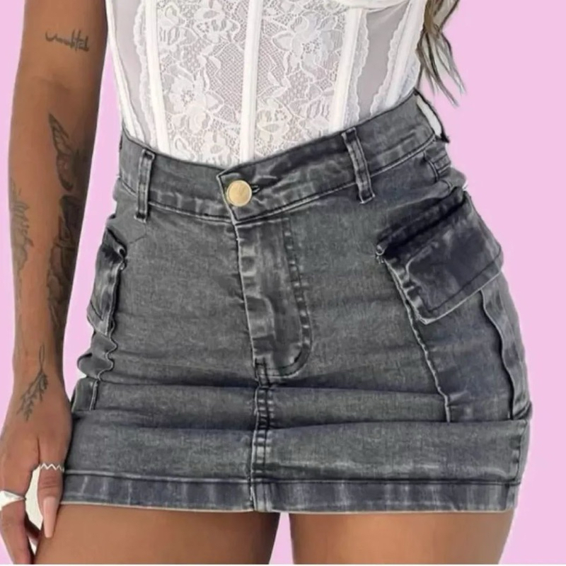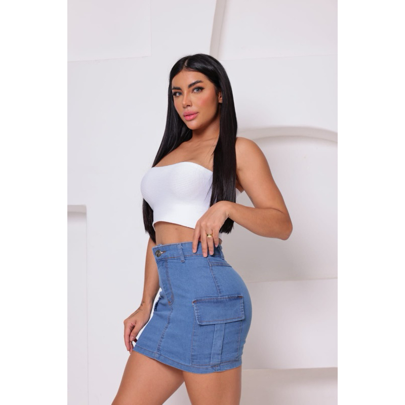 Mini saia cargo jeans branca de alta qualidade empina bumbum vários cores disponíveis