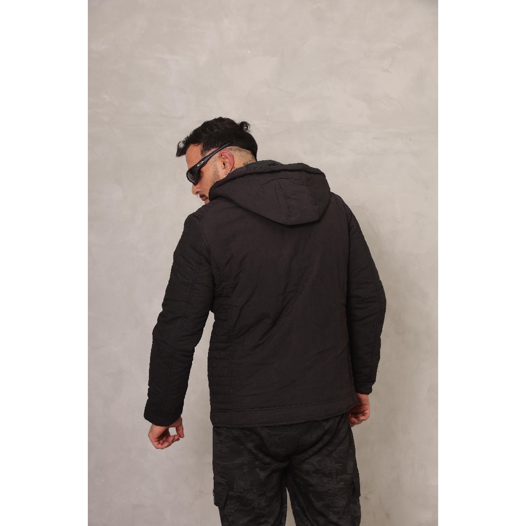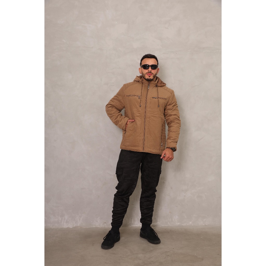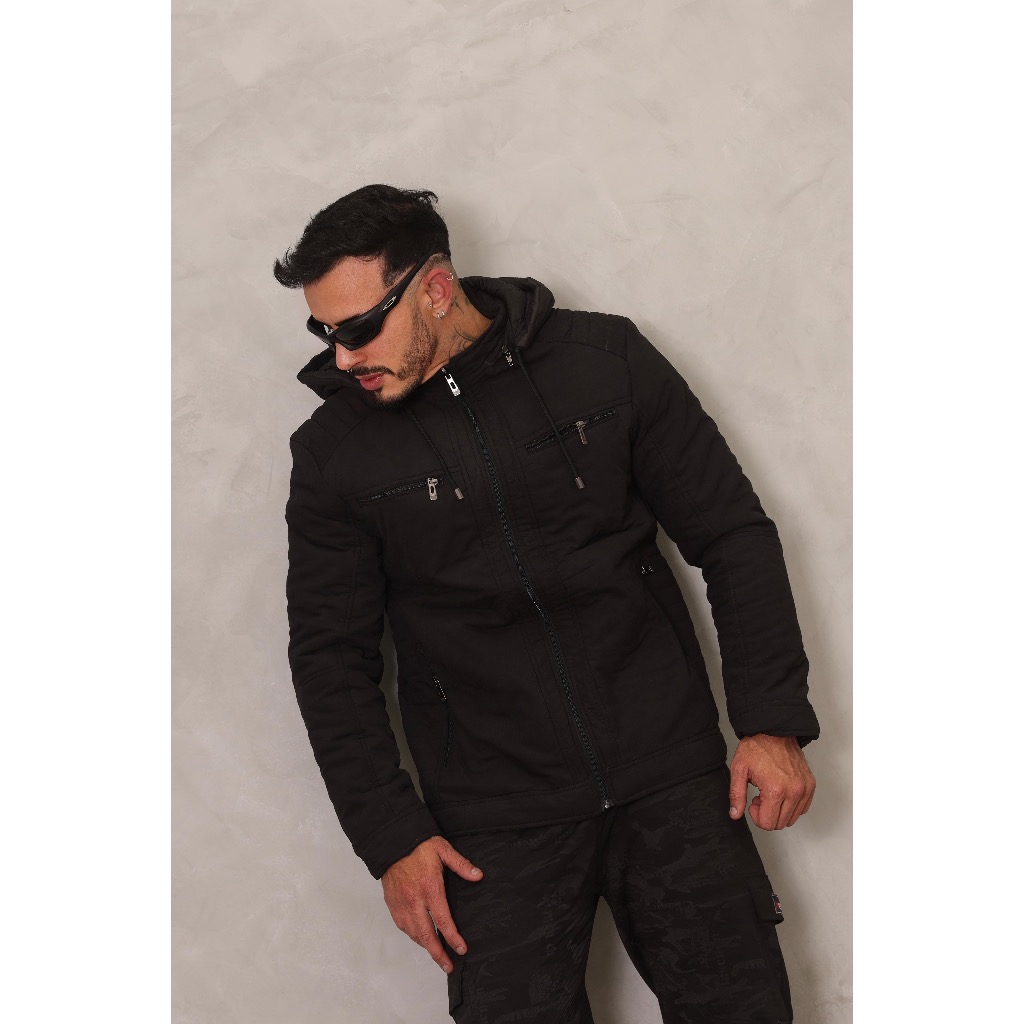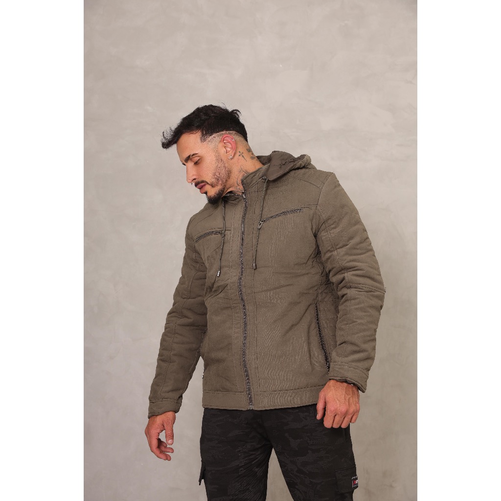 Jaqueta masculina dupla face tecido sarja de um lado e nylon no outro lado de alta qualidade impermeável capuz removível