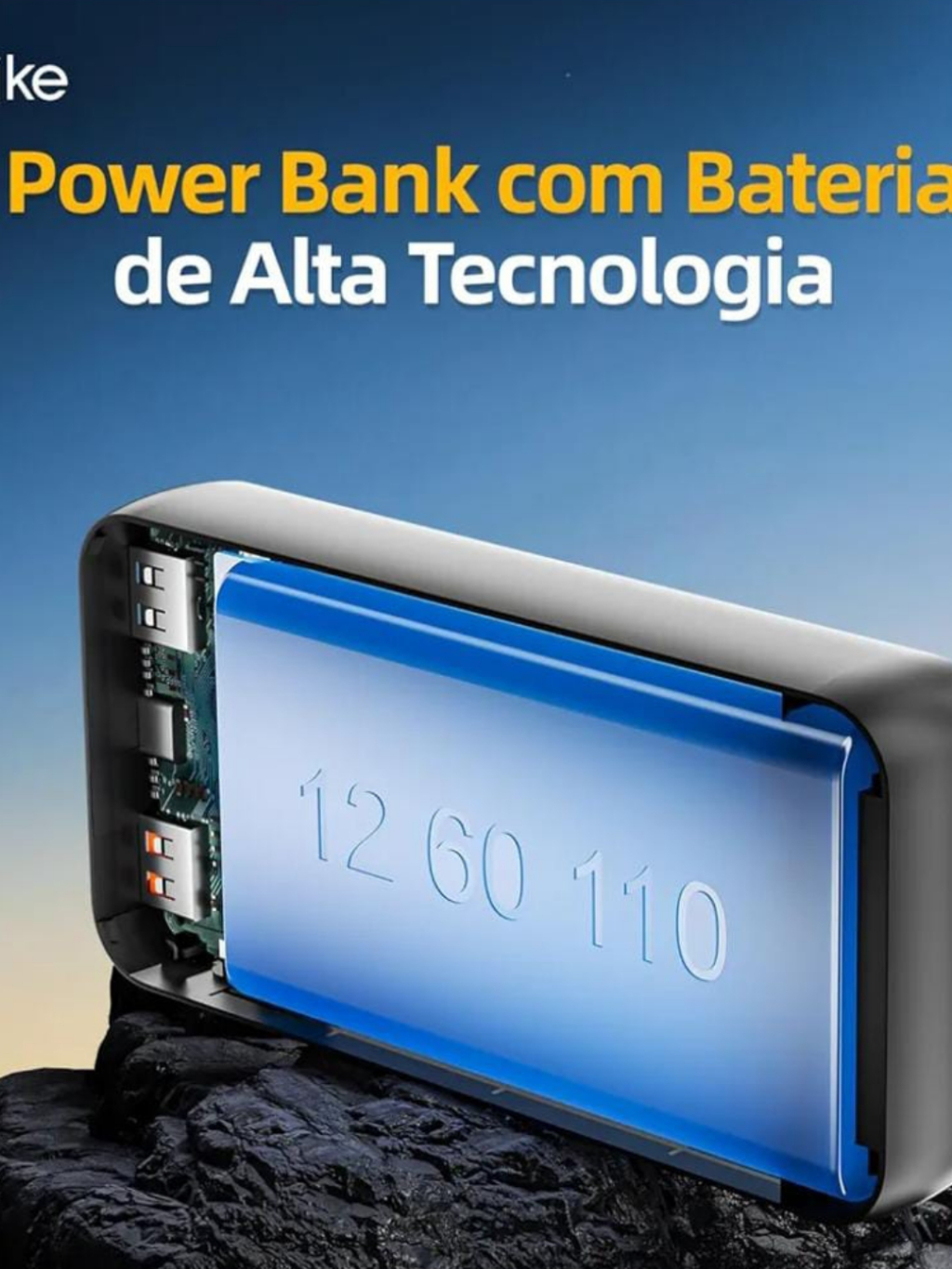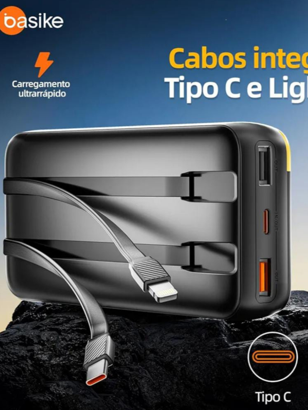 Power Bank 20000mAh 22.5W Carga Rápida 2 USB + Tipo C LED Portátil