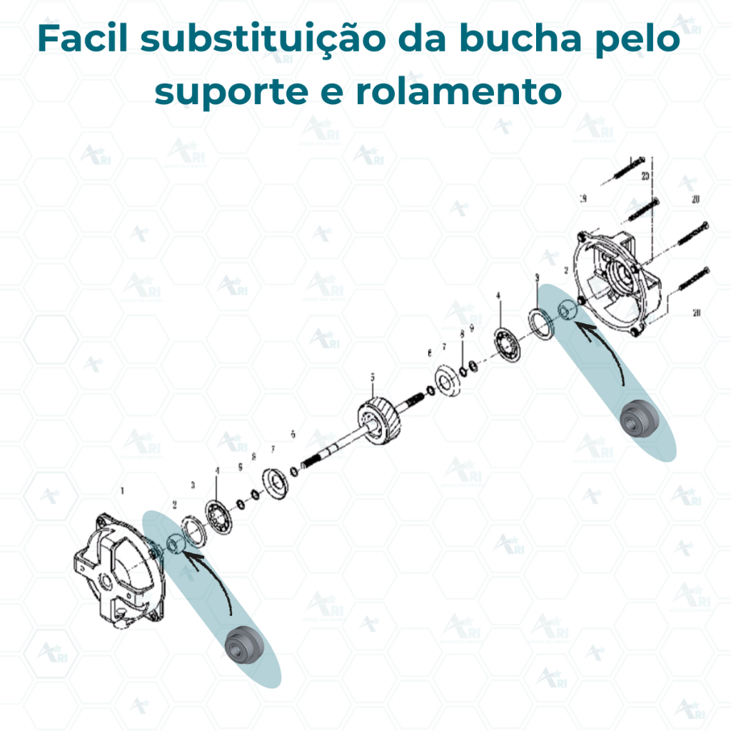 Kit calços com rolamentos 608RS ou 608ZZ, para substituição da bucha do motor ventiladores