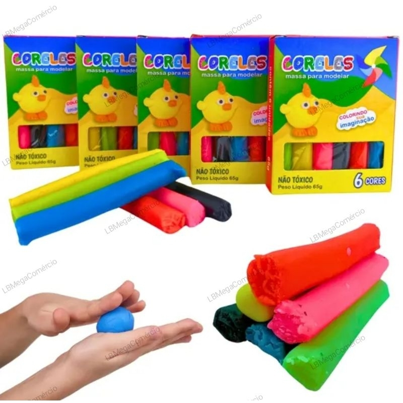 Kit 5 Massinha de Modelar + 10 Moldes Brinquedo Infantil Festa Lembrancinha