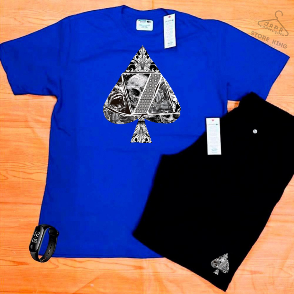Conjunto Camiseta Bermuda Tactel Kit Estampa ESPADILHA Academia e Caminhada +RELOGIO