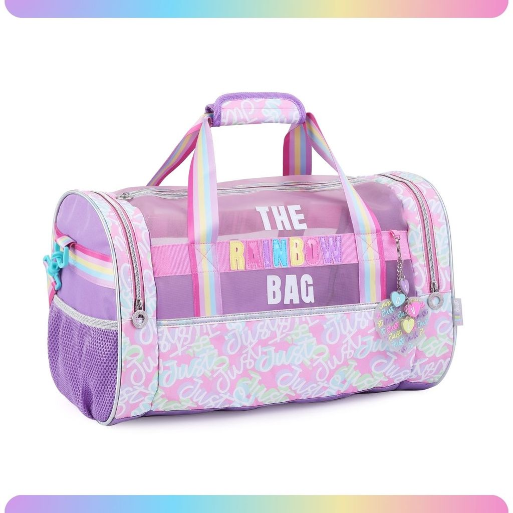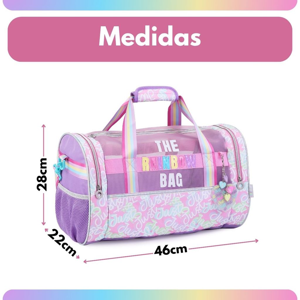 Sacola Grande Bag Viagem Academia com Divisórias Arco-Iris Organizadora Estilosa Lilás Rosa Passeio
