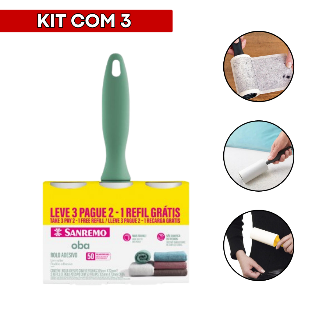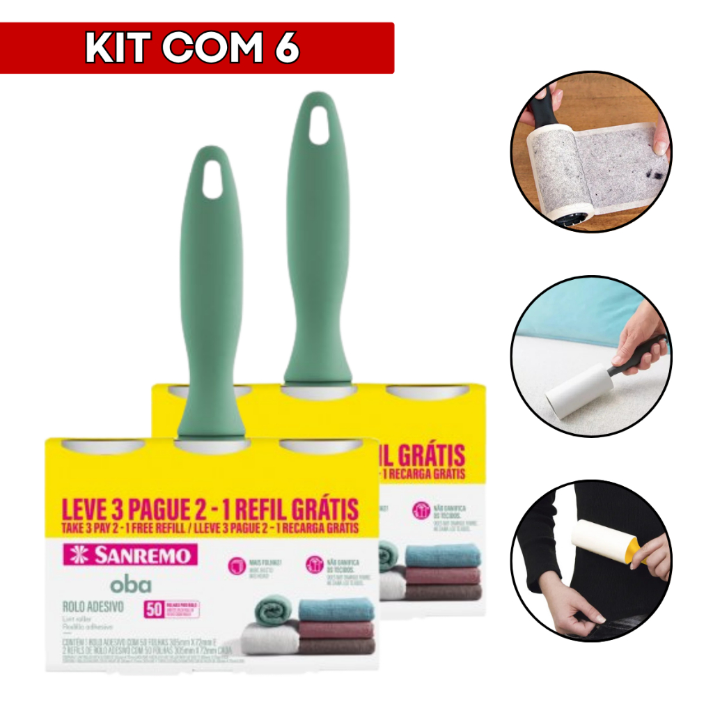 Kit Rolo Tira Pelo Adesivo de Roupas Cama Sofa Poeira Sanremo