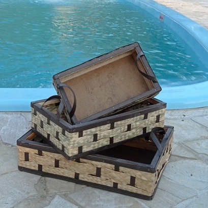 Bandeja rústica decoração cesta para café da manhã caixa organizadora cesta carnaúba