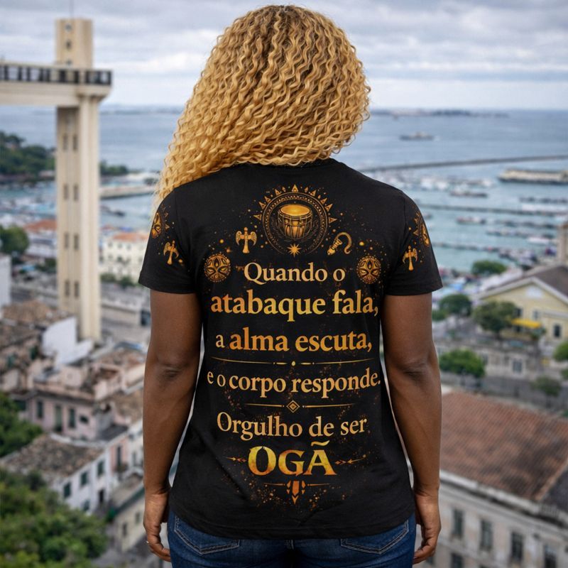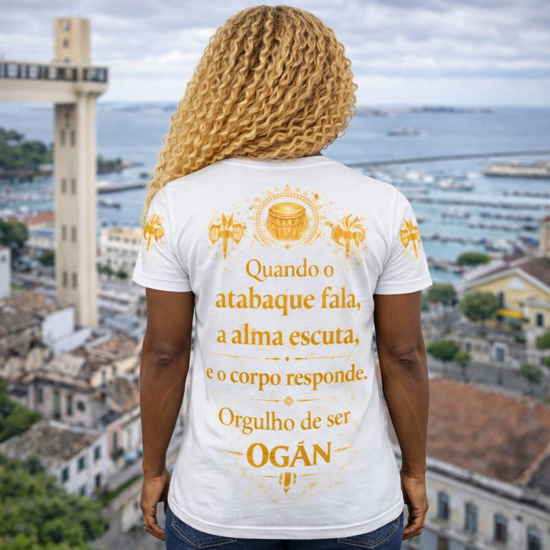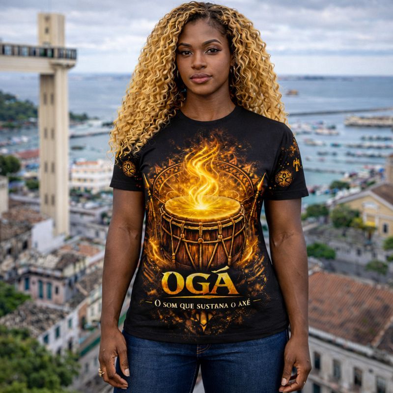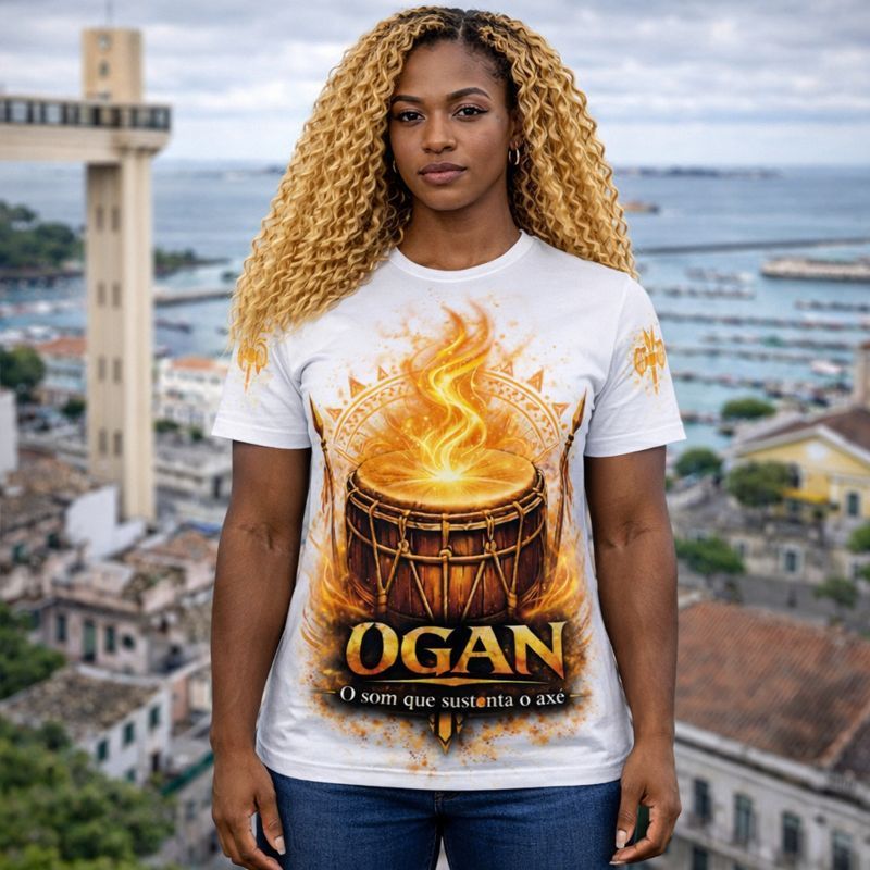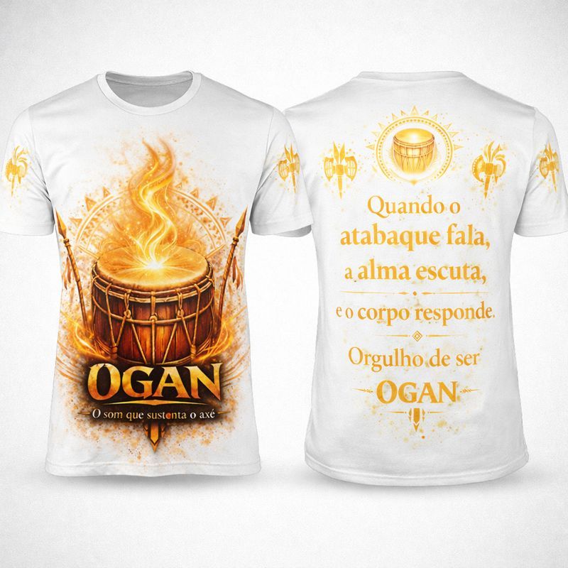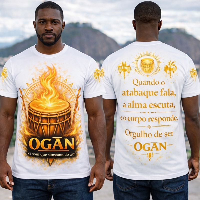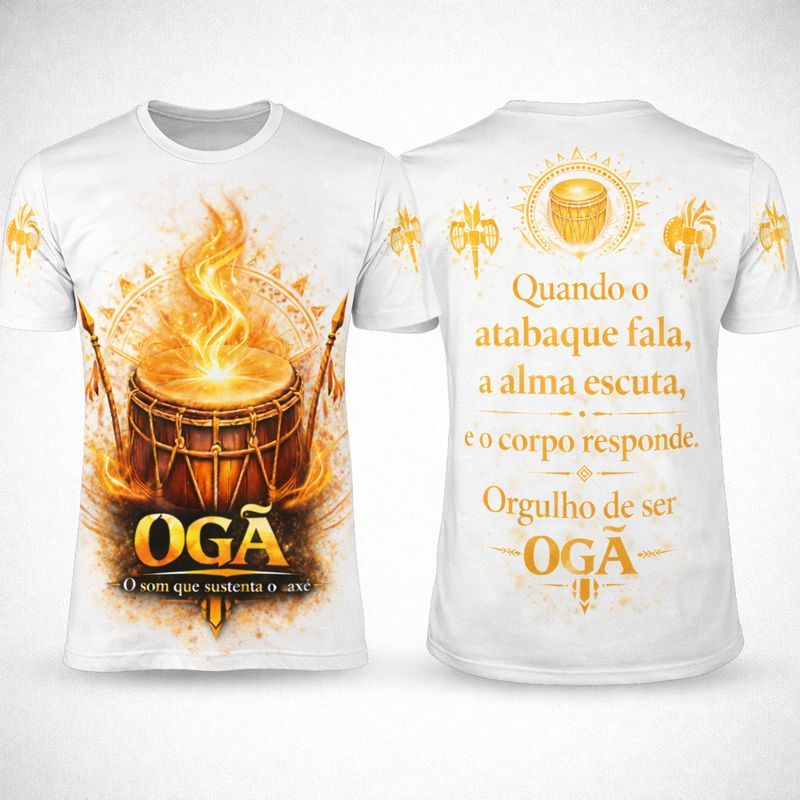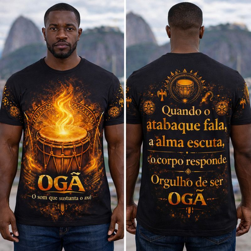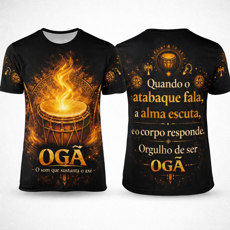 Camiseta Estampada OGÃ Atabaque Camisa Moda Afro & Axé, Unissex