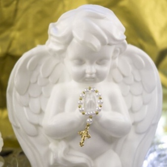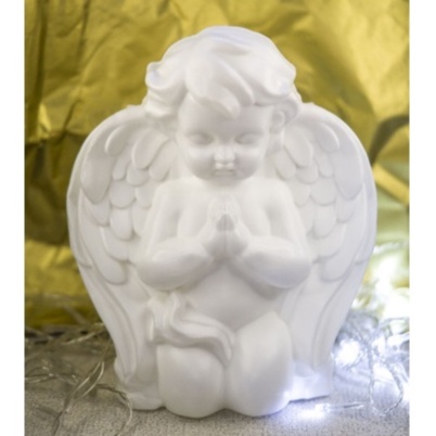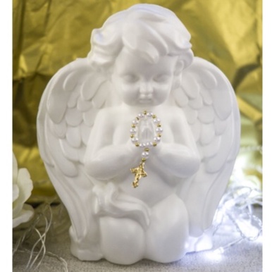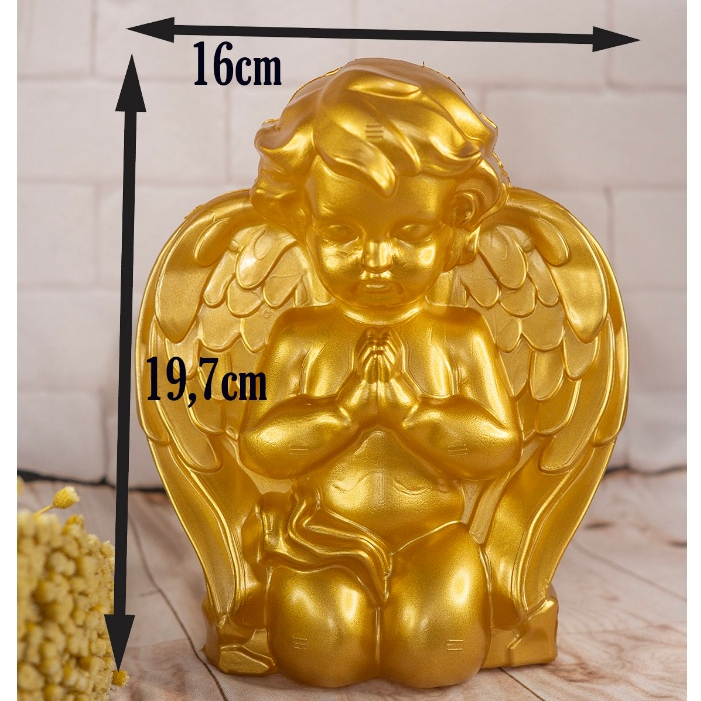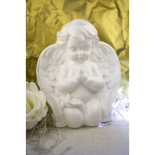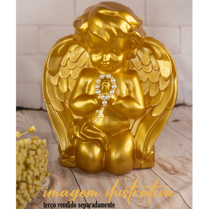 Imagem Anjo Rezando Branco ou dourado enfeite de mesa batismo, comunhão plástico 19 cm unidade