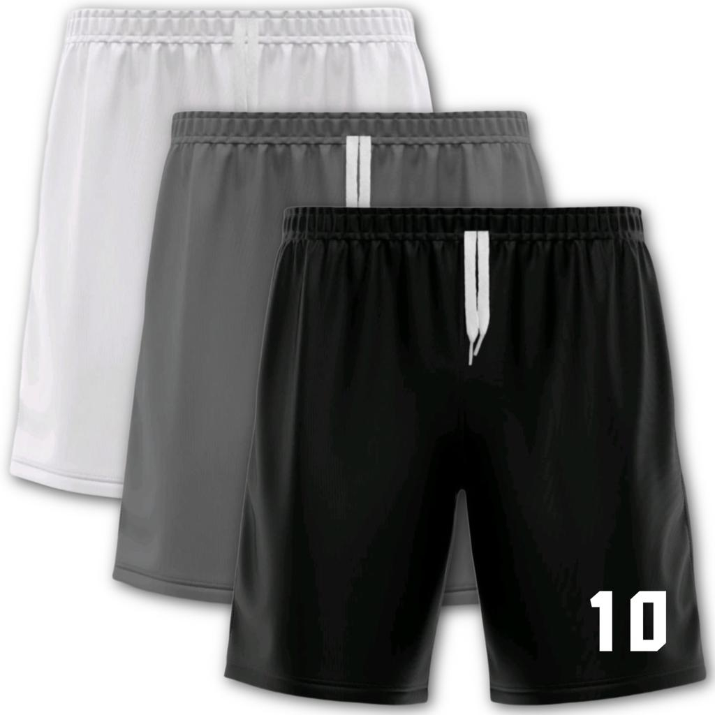 Kit com 3 Bermudas Shorts de Futebol Dry Fit Com Numeração 10 Masculino