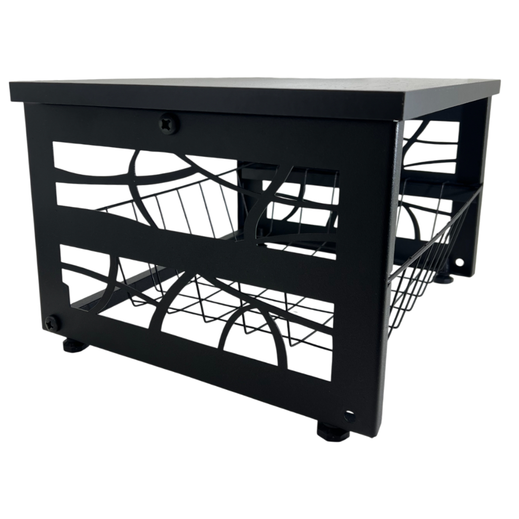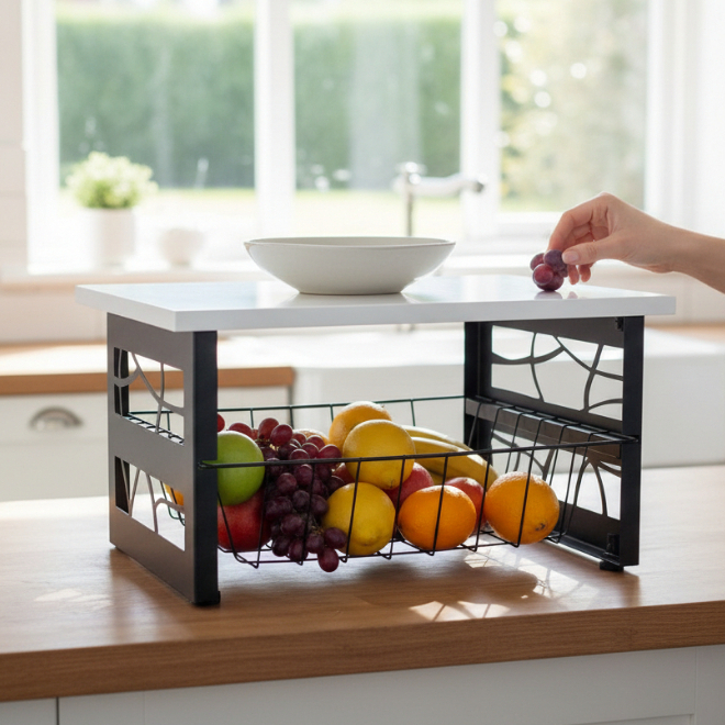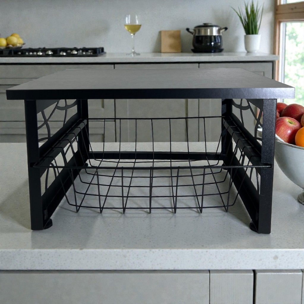 Fruteira Em Aço 1 Cesto Multiuso De Bancada Para Mesa Preto MDF