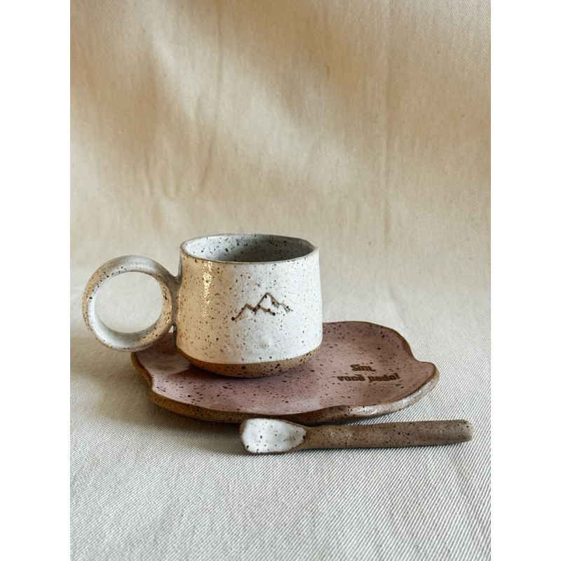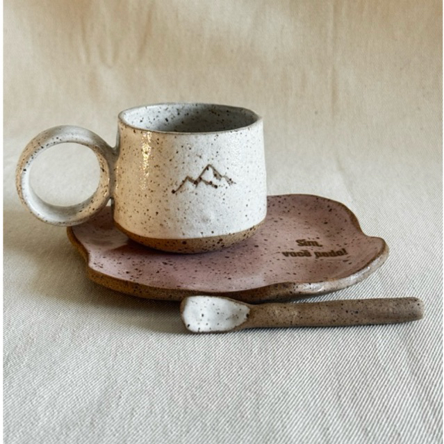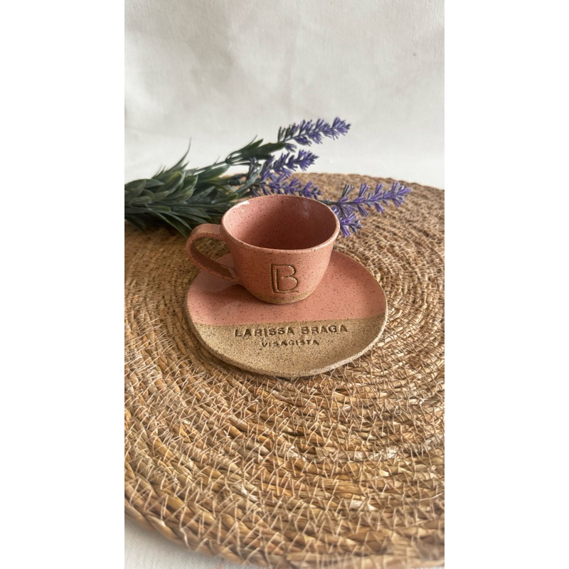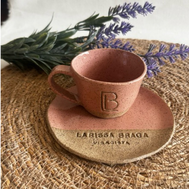 Kit Poema com Nome Personalizado – Xícara + Pires Rústico e Afetivo | Cerâmica Artesanal