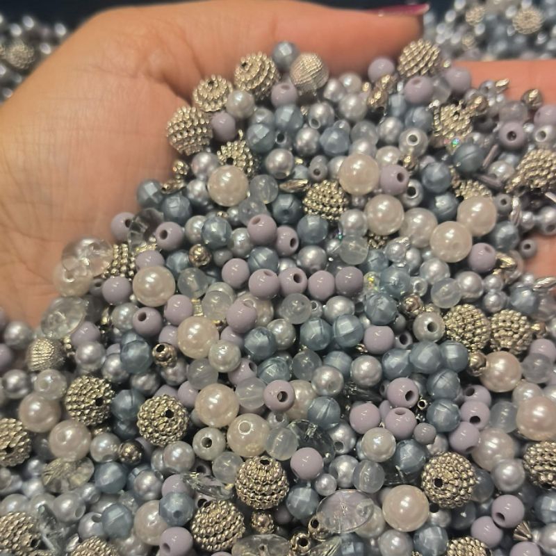 Blend Mix Pérolas Bolinhas Miçangas CINZA/PRATA Tamanhos e formas VARIADOS