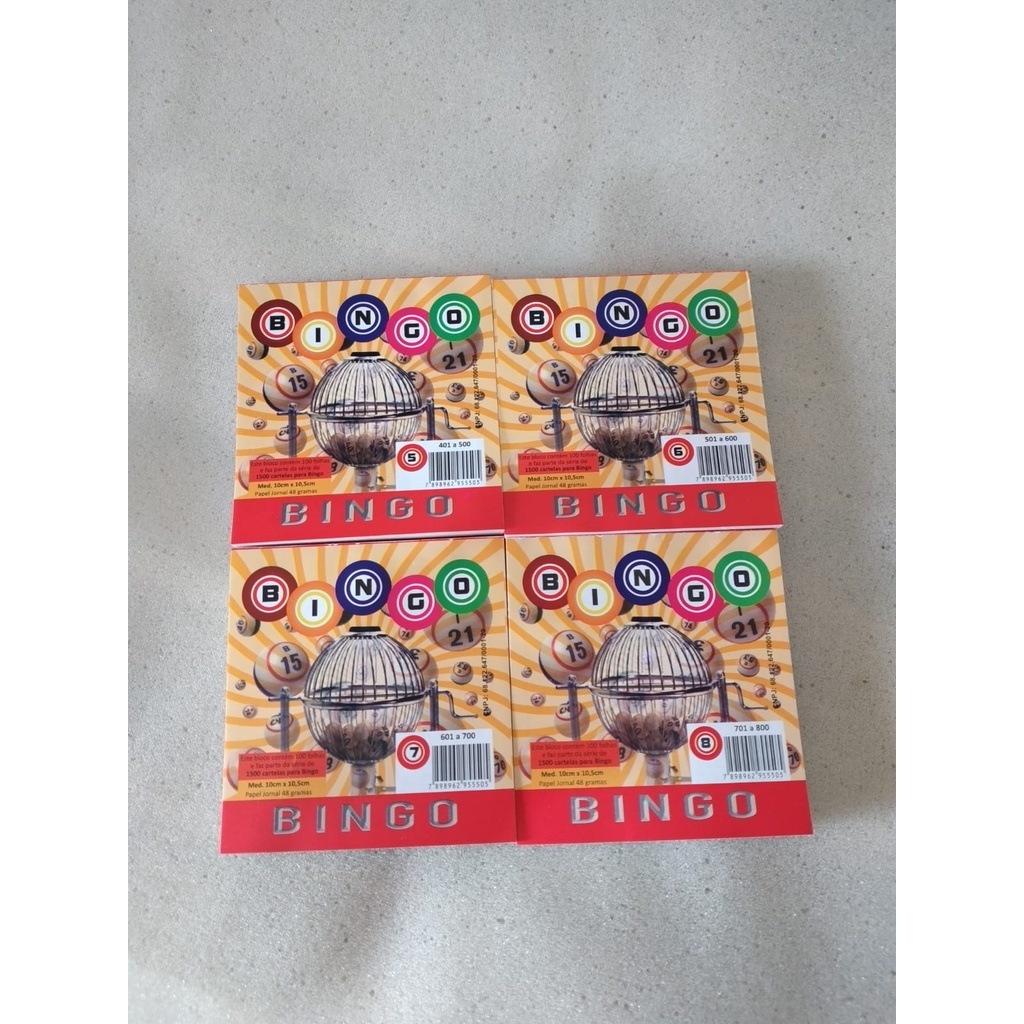 Conjunto 4 blocos de cartela BINGO 400 fls jornal 10,5cm x 10cm