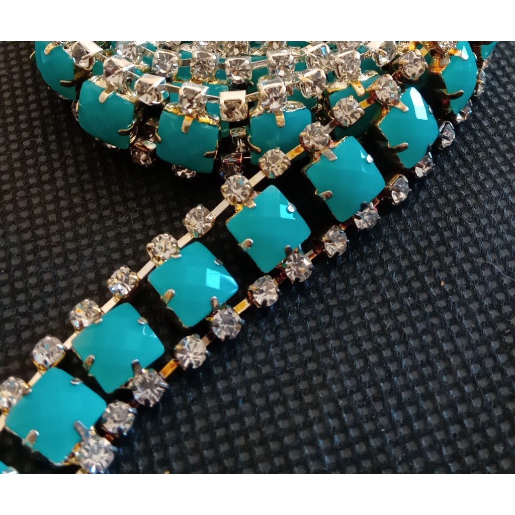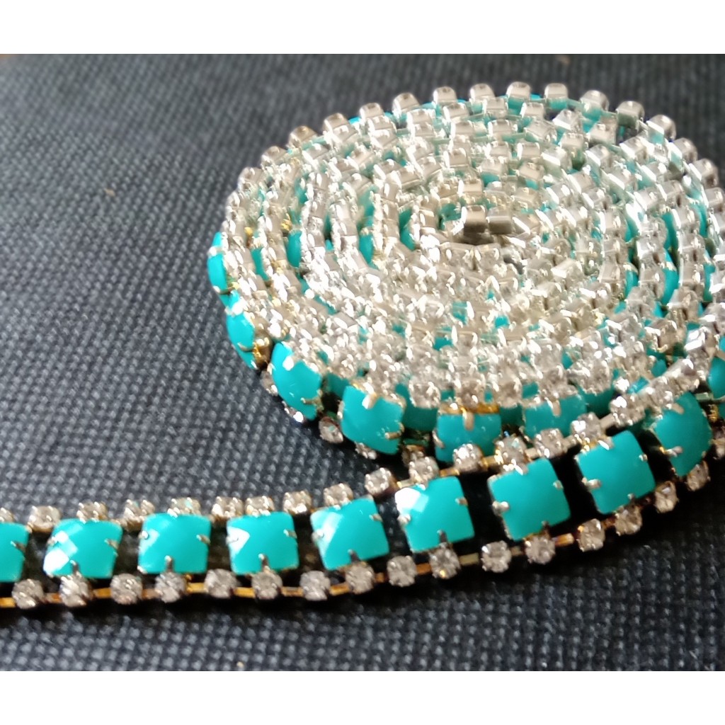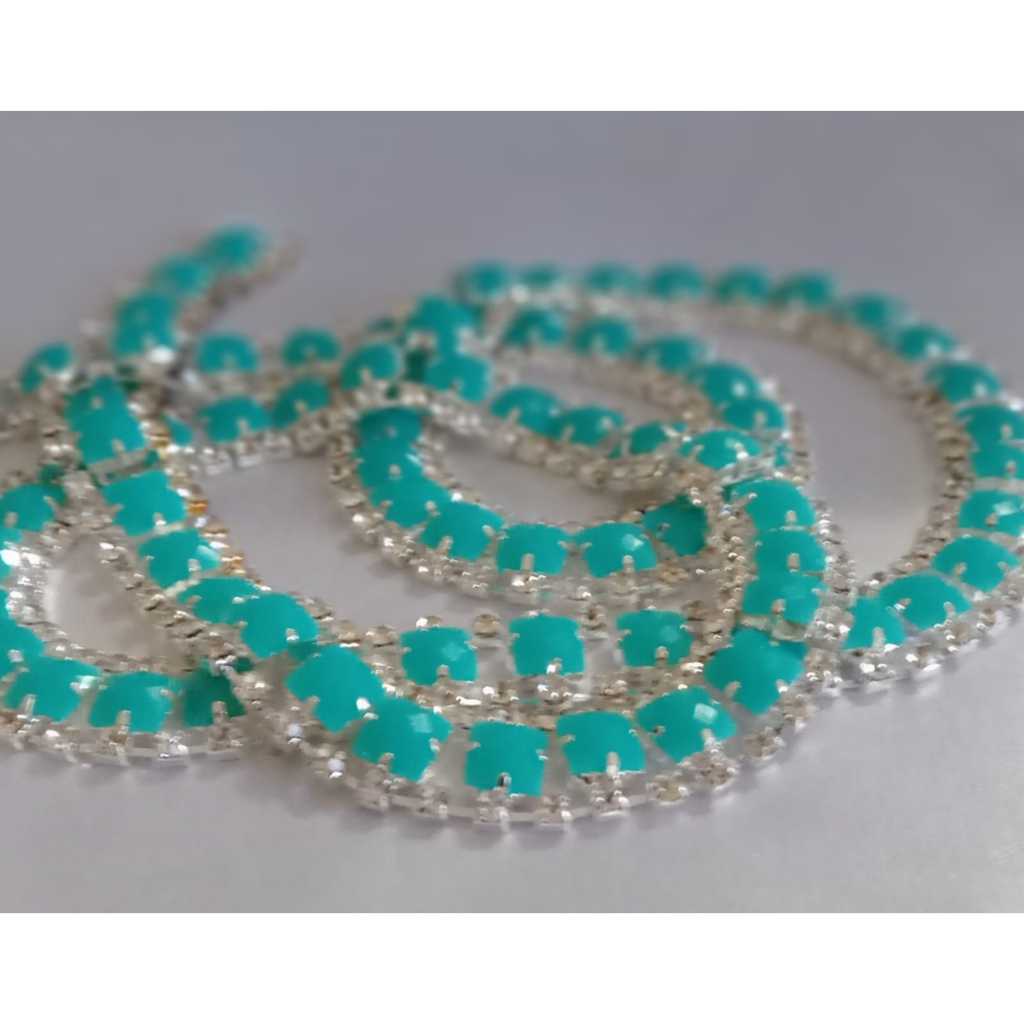 Passamanaria com Base Prateado com Pedras de Acrílico Azul Turquesa - 1 metro