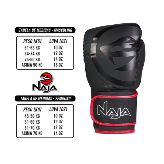 Kit Luva Naja - Boxe e Muay Thai - brinde - Bandagem e Bocal