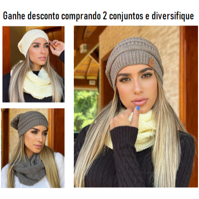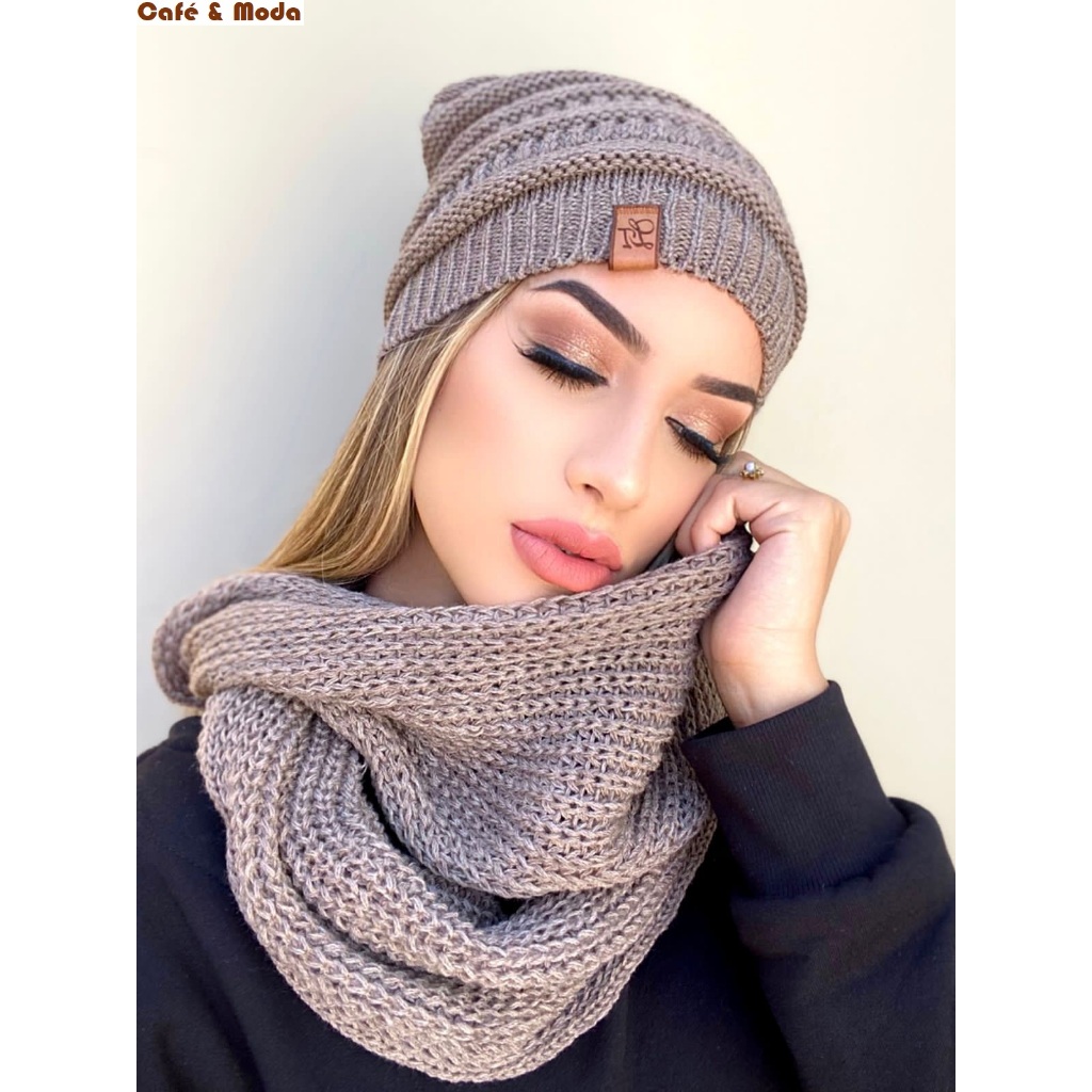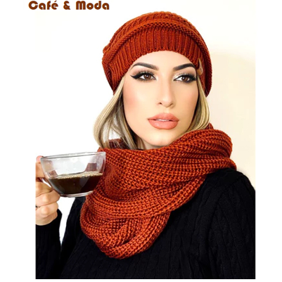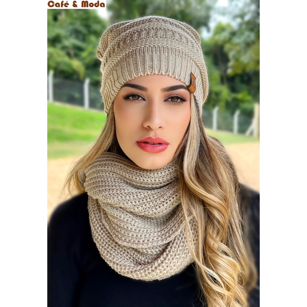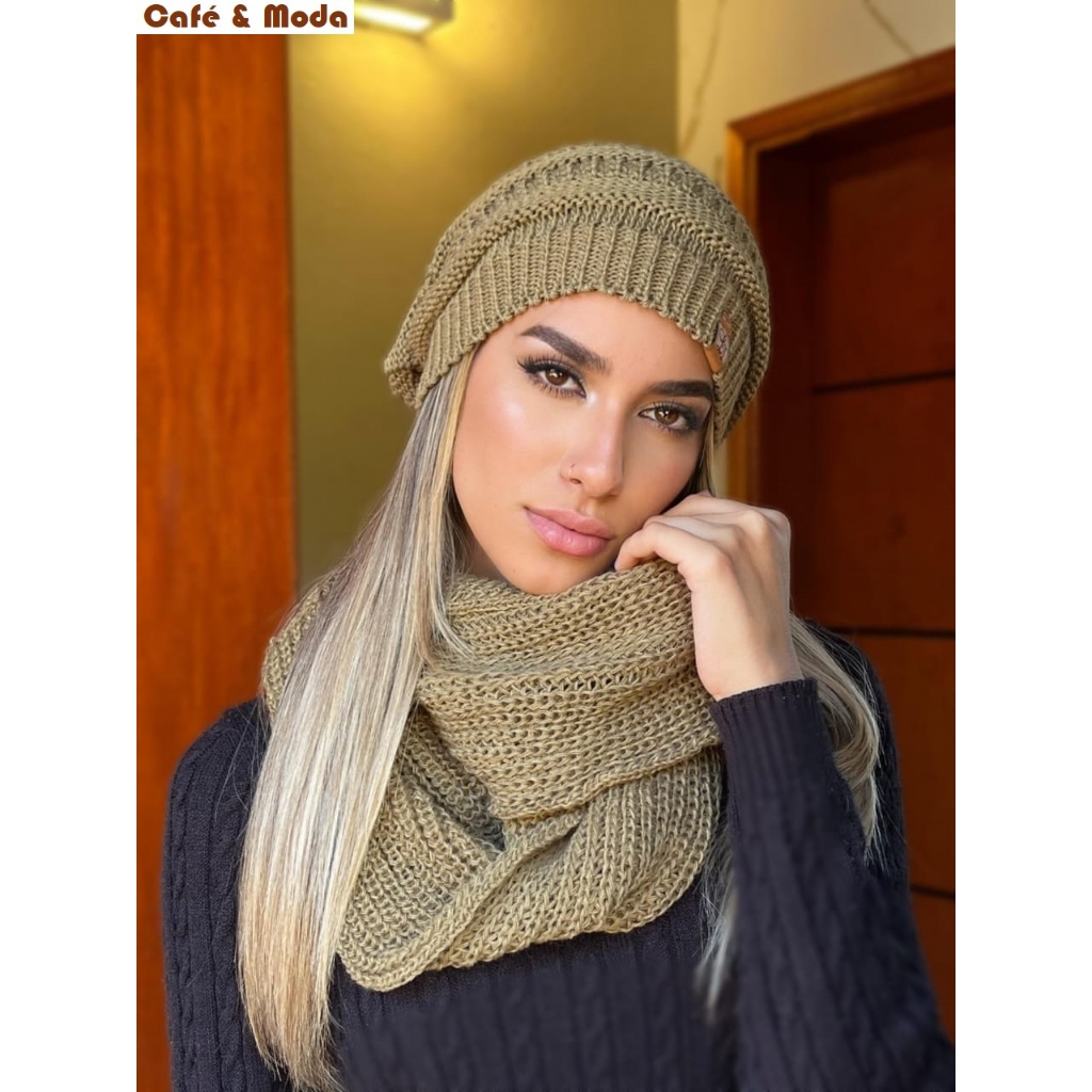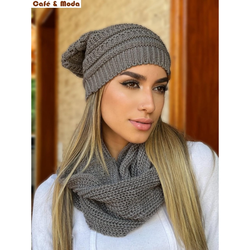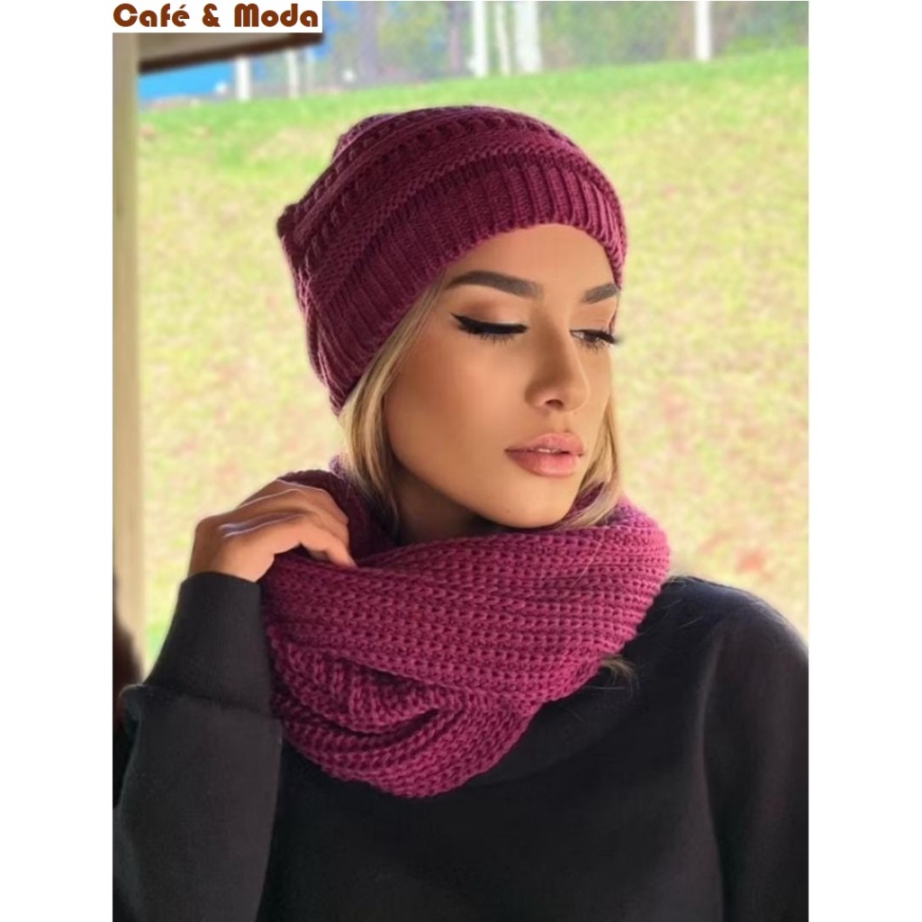 Conjunto Unissex Gorro Touca + Gola Cachecol Infinito Tricot Lã Macio Nova Tendência Moda De Inverno