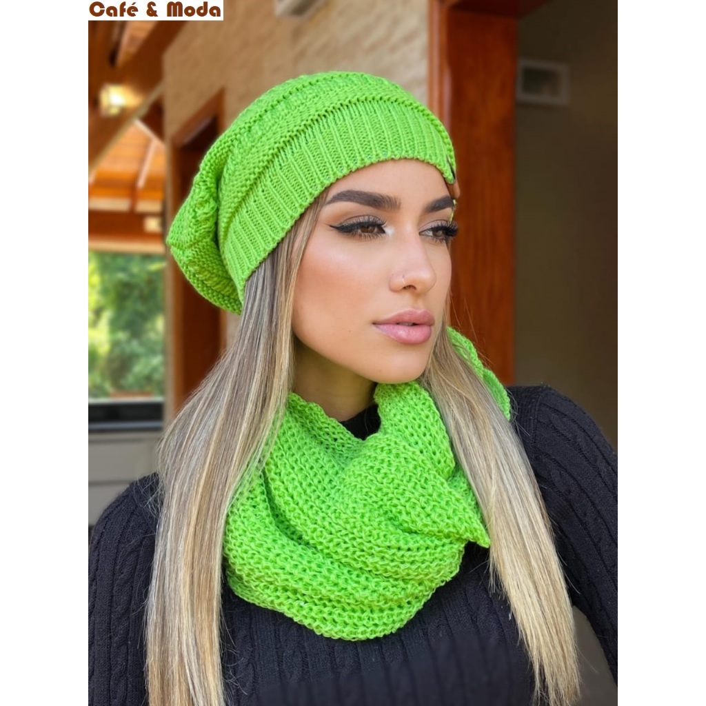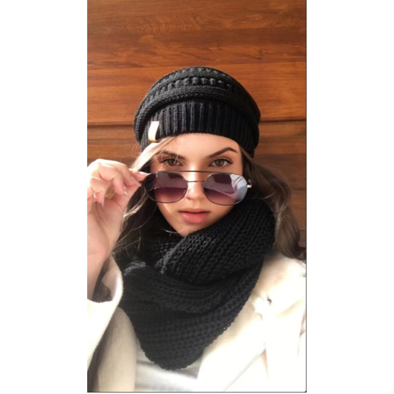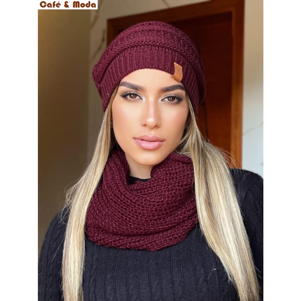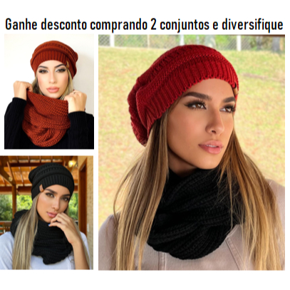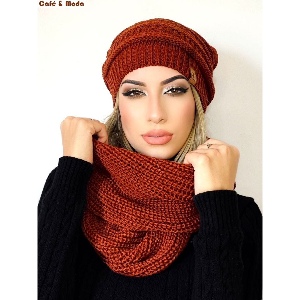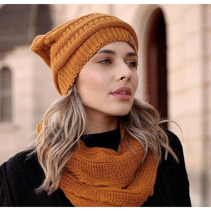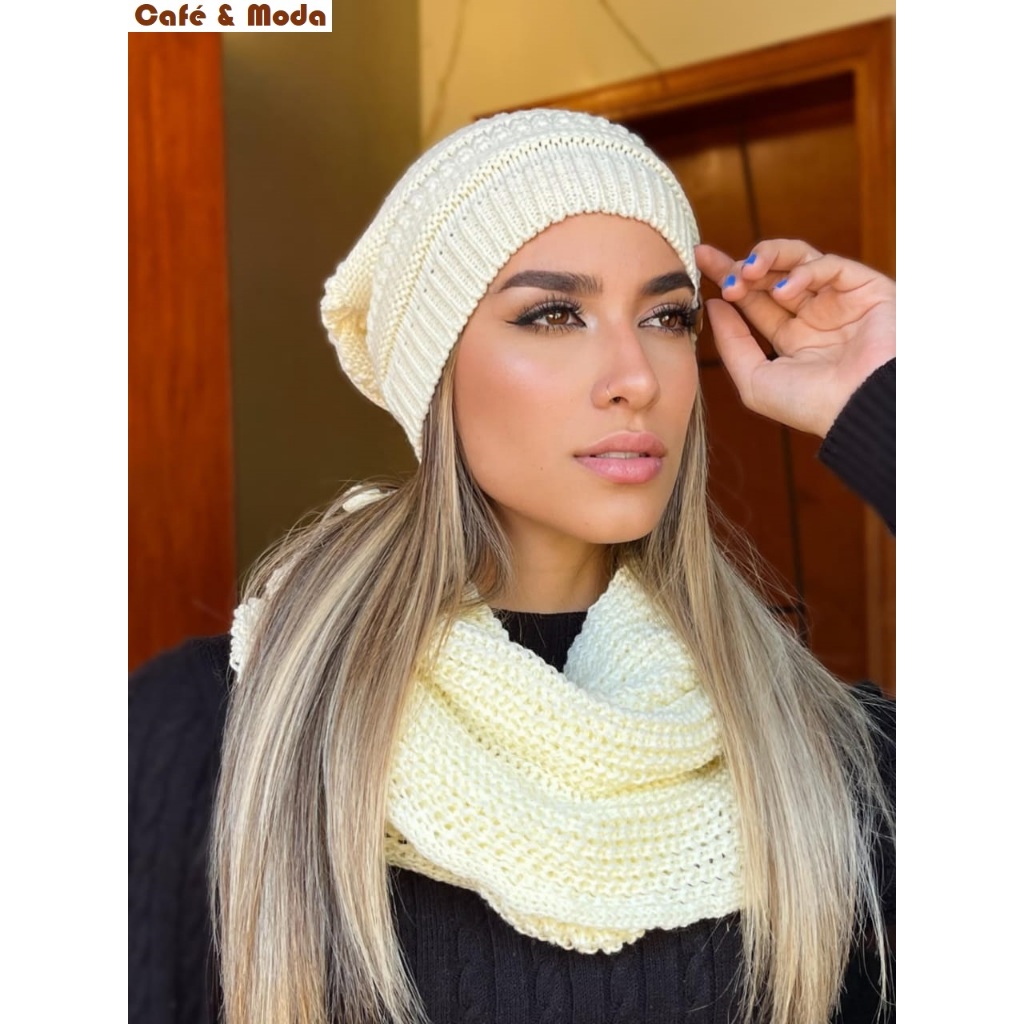 Conjunto Unissex Gorro Touca + Gola Cachecol Infinito Tricot Lã Macio Nova Tendência Moda De Inverno