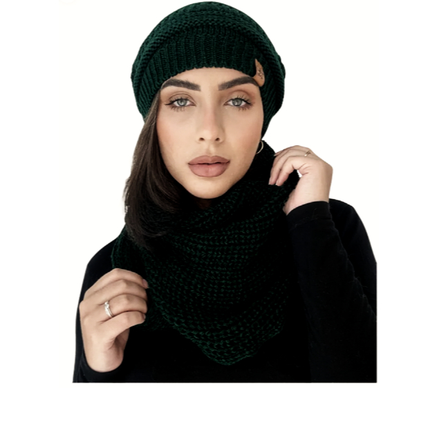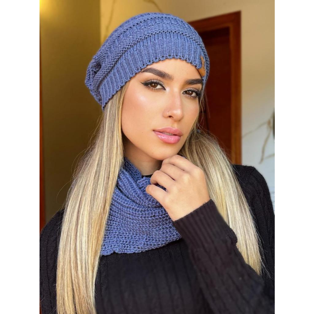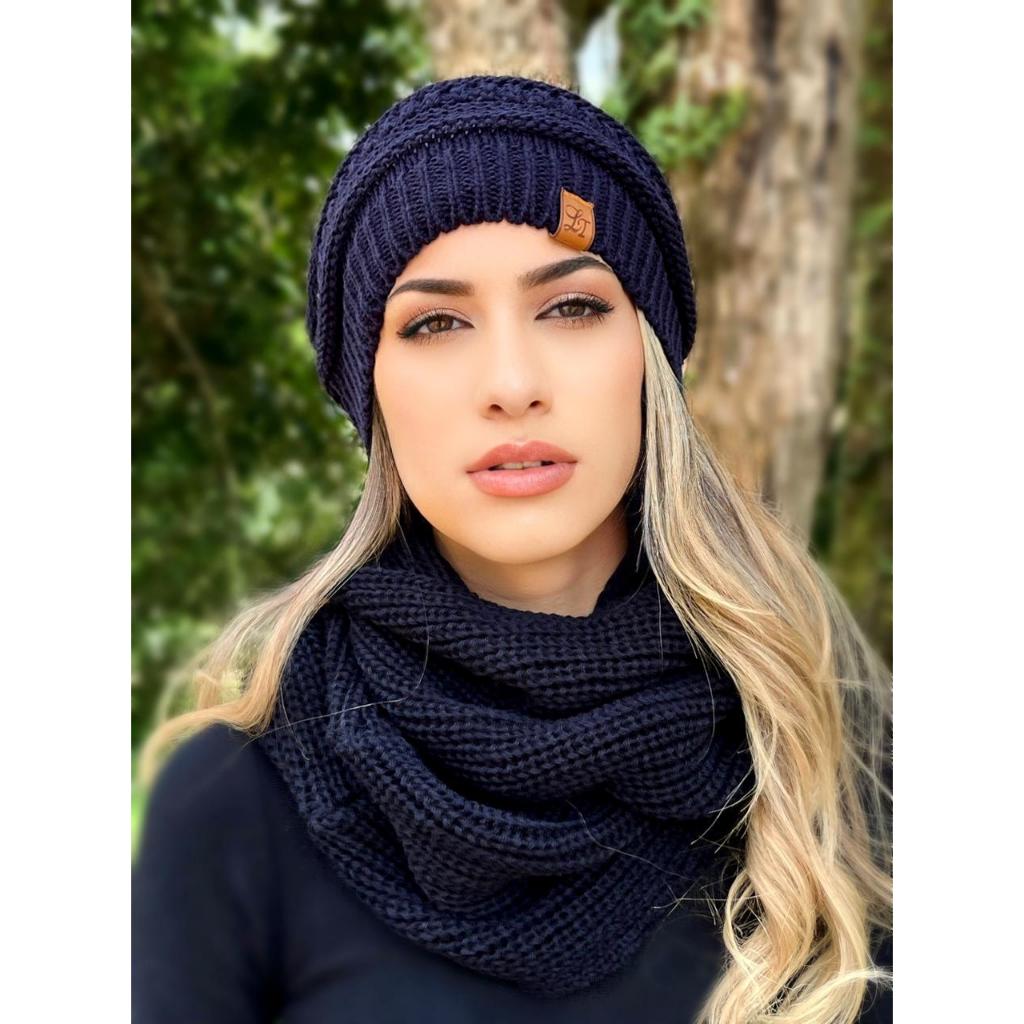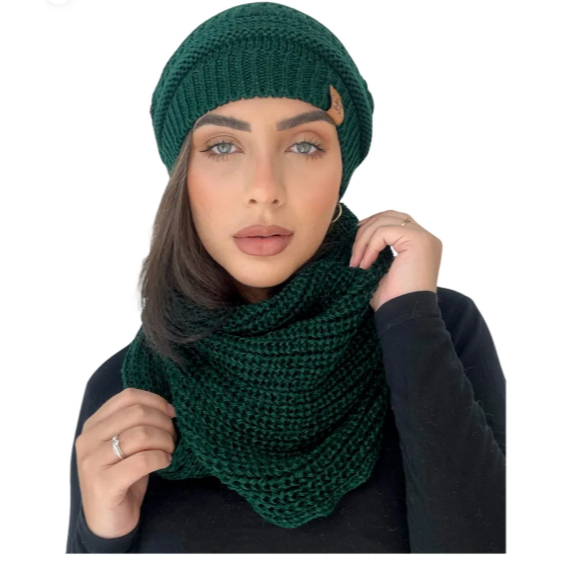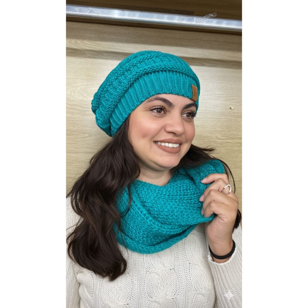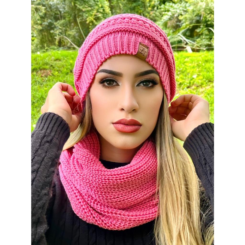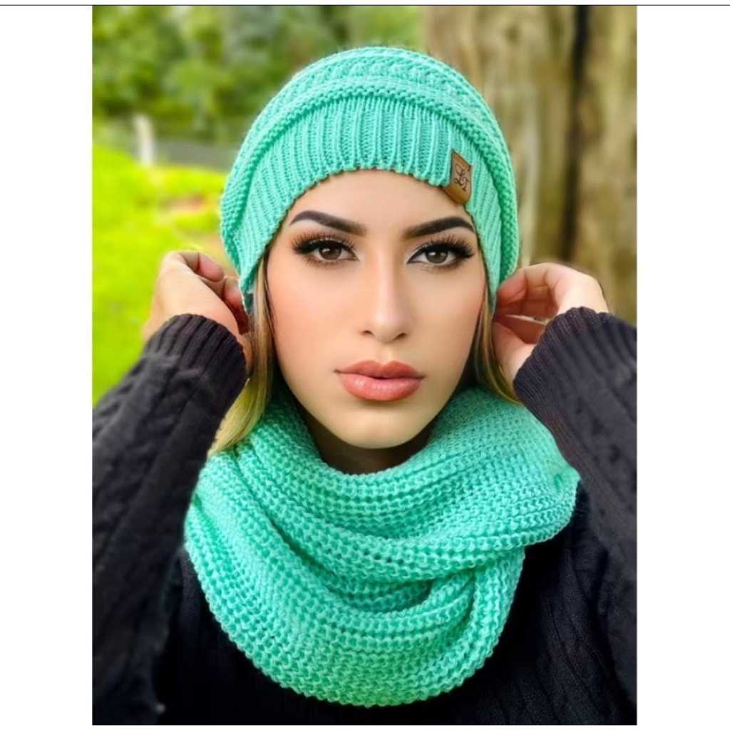 Conjunto Unissex Gorro Touca + Gola Cachecol Infinito Tricot Lã Macio Nova Tendência Moda De Inverno