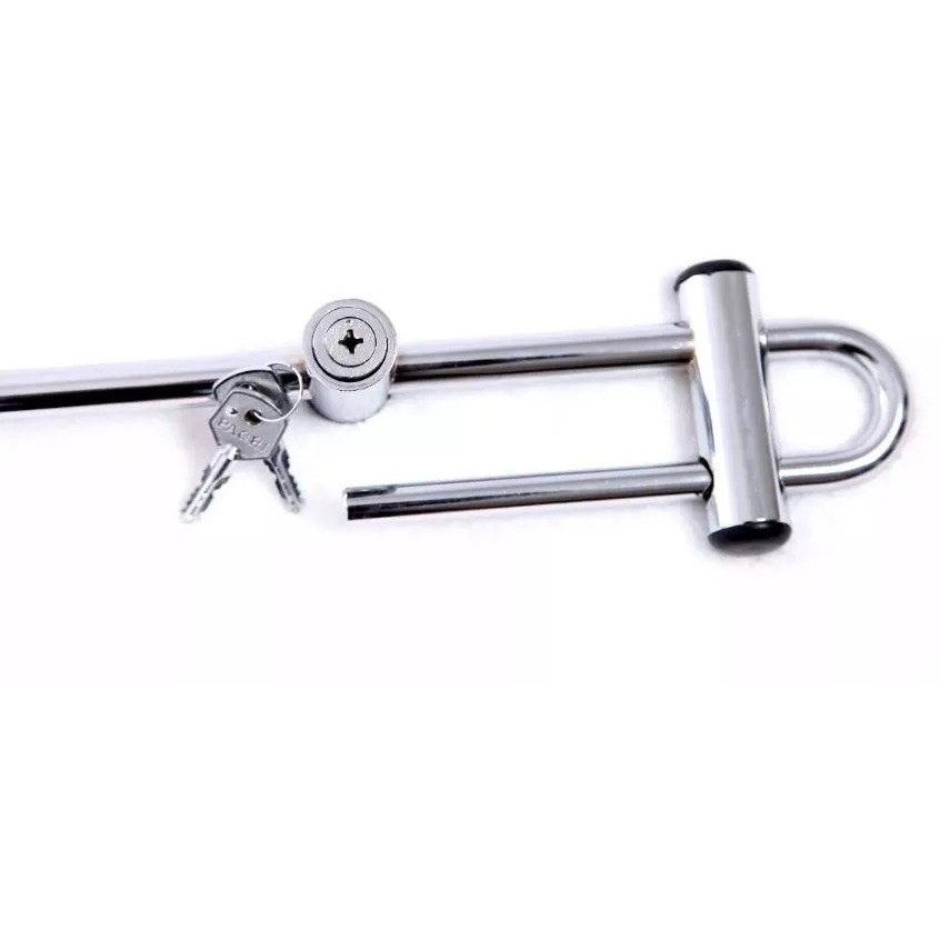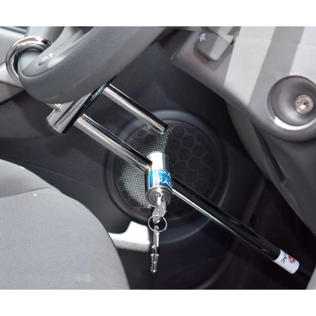 Trava Anti-Furto Carro Tranca De Segurança Cromada Aço Maciço Volante e Pedal Carros Caminhonetes Ônibus Caminhão