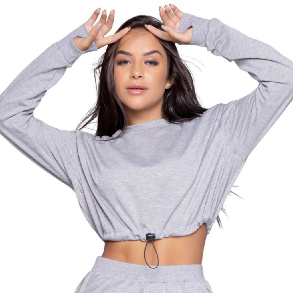 Cropped Feminino Manga Longa Gringa Moletinho Com Regulagem Esportivo