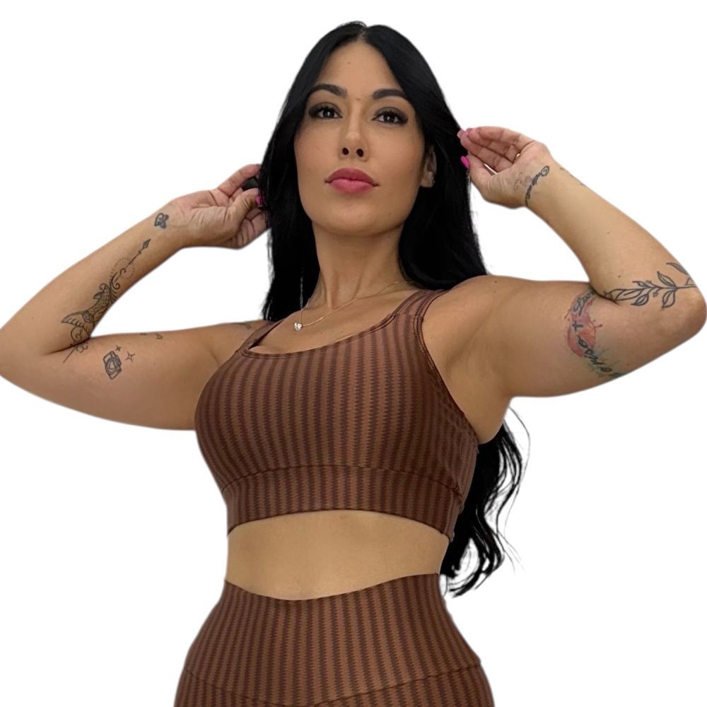 Cropped de Academia com Bojo Removível 3D Top Fitness Feminino Sustentação Nicole