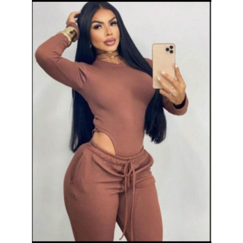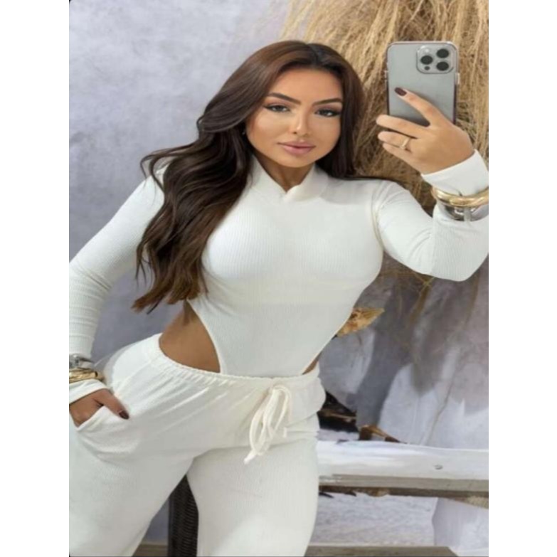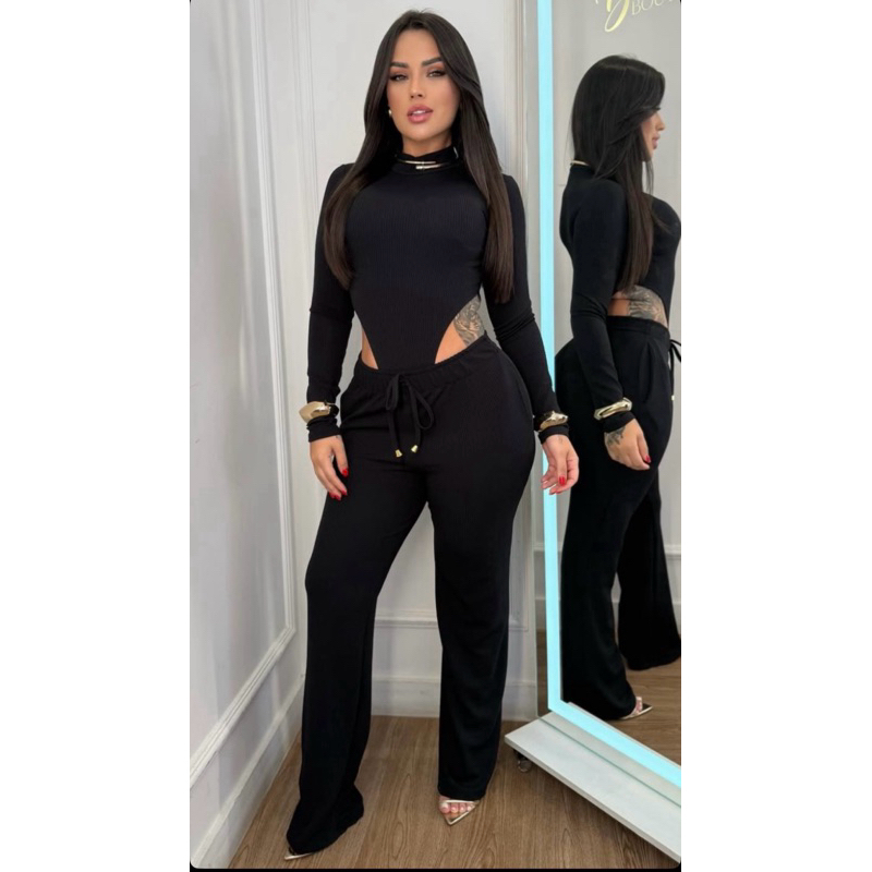Conjunto LUXO calça pantalona e body cavado manga longa