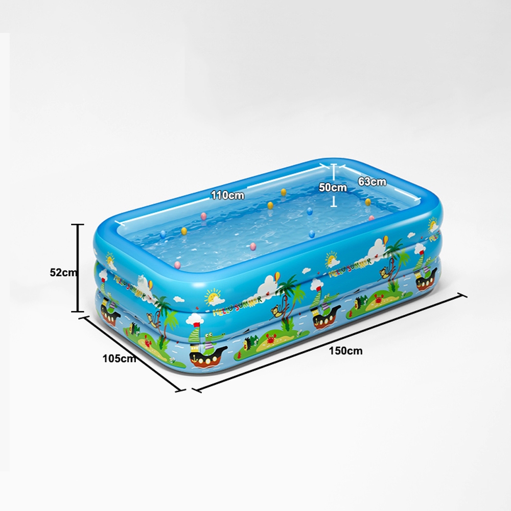 💗【Novidades】Piscina Inflável Retangular Infantil 3 Anéis 300 Litros | 150cm x 100cm x 56cm