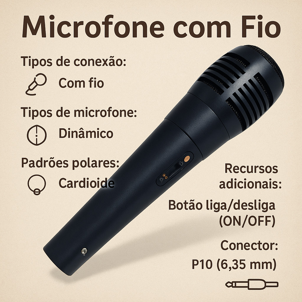 Kit 2 Microfone Dinâmico Karaokê De Mão On/Off P10 XLR Cabo Profissional